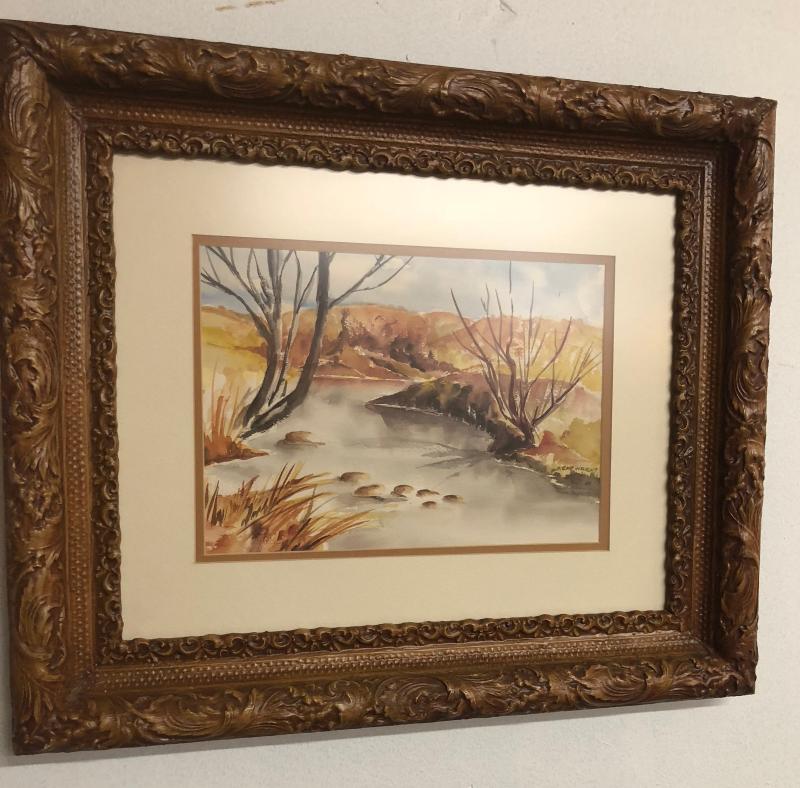 Here is an original river landscape in watercolors...Signed by the artist H. Cartwright...Framed...21 x 26"...