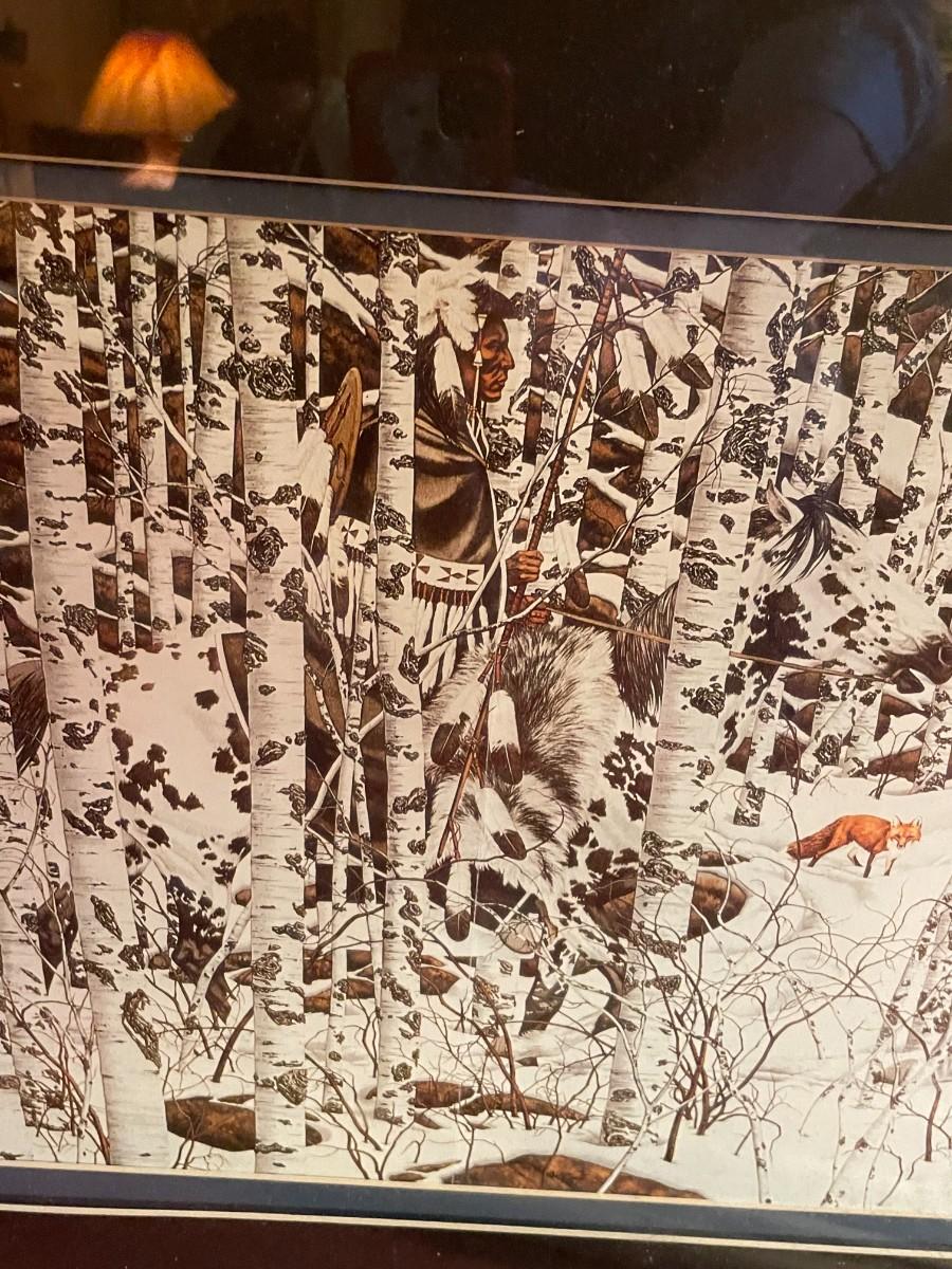 Framed Winter Hunting Portrait with Arrowhead