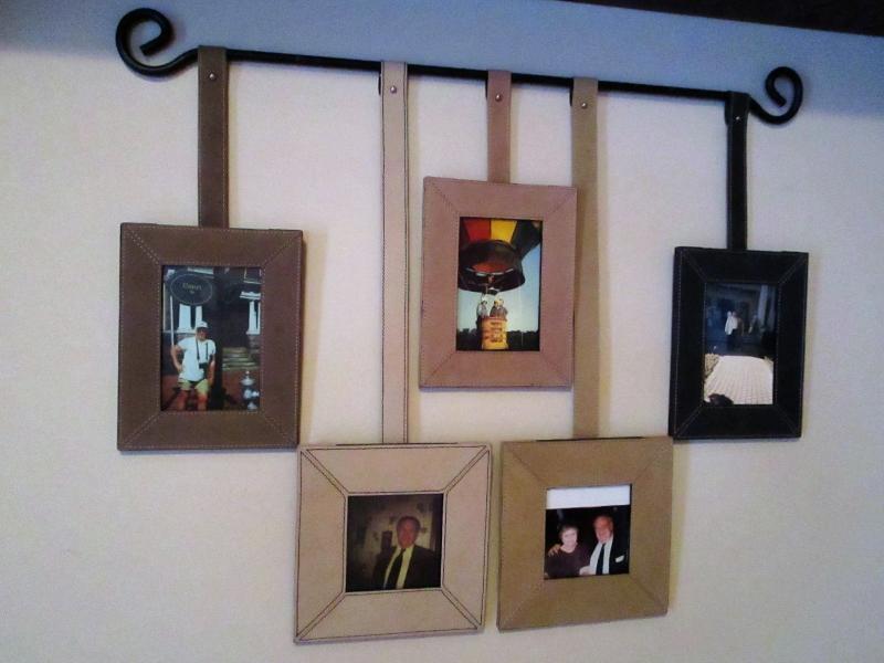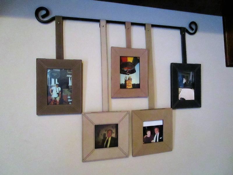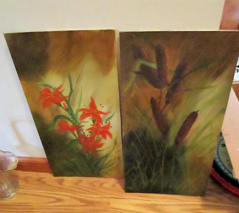 Original artwork by Phyllis Farey dated signed and leather bound metal picture frame wall hanging (picture wall hanging is one of 2)