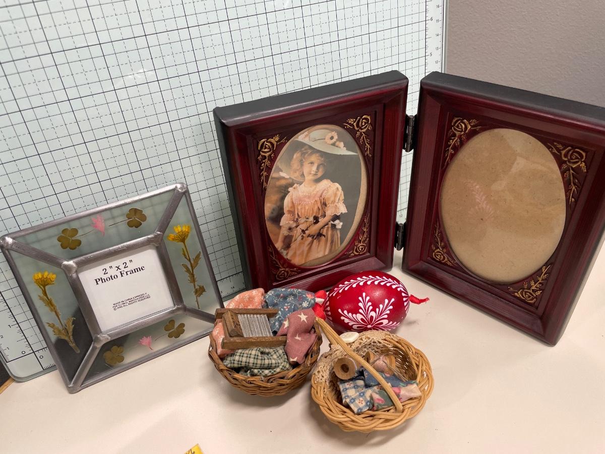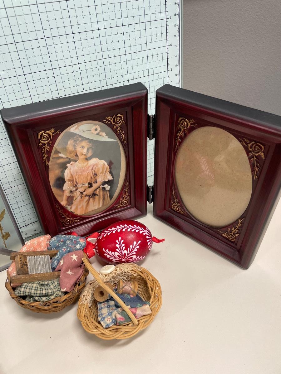Frames and small baskets with egg ornament