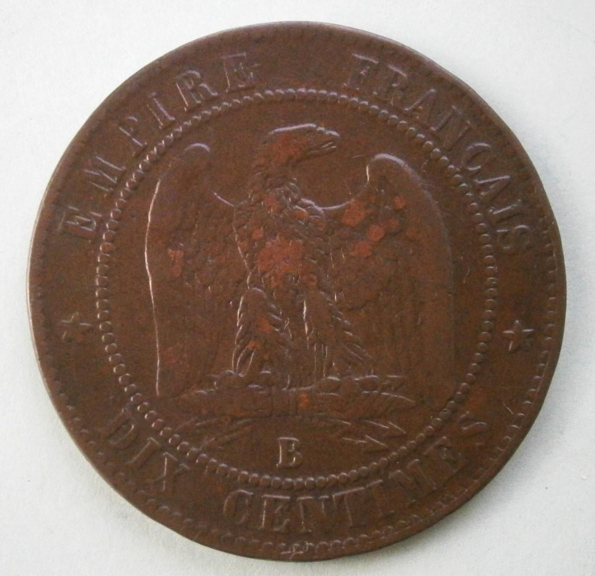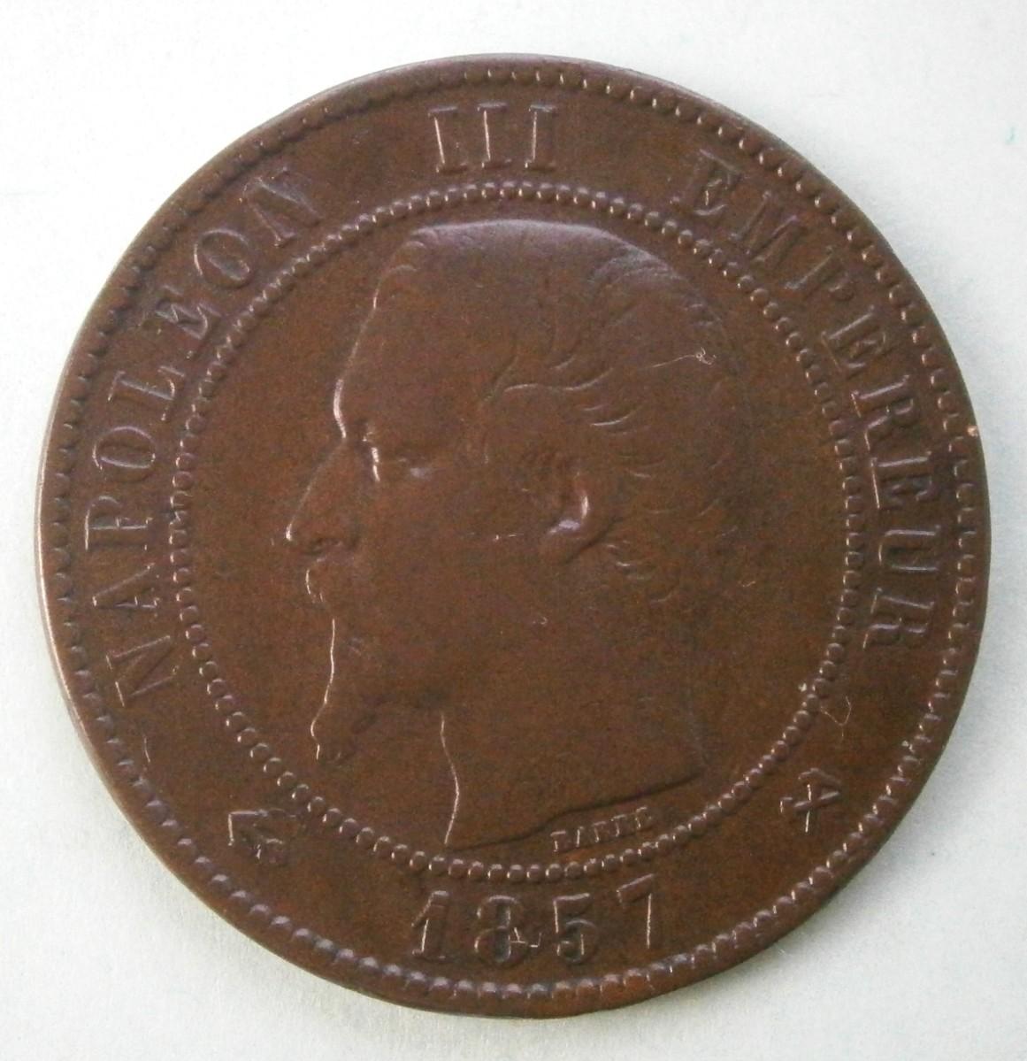 FRANCE 1857B DIX (10) Centimes Copper Coin