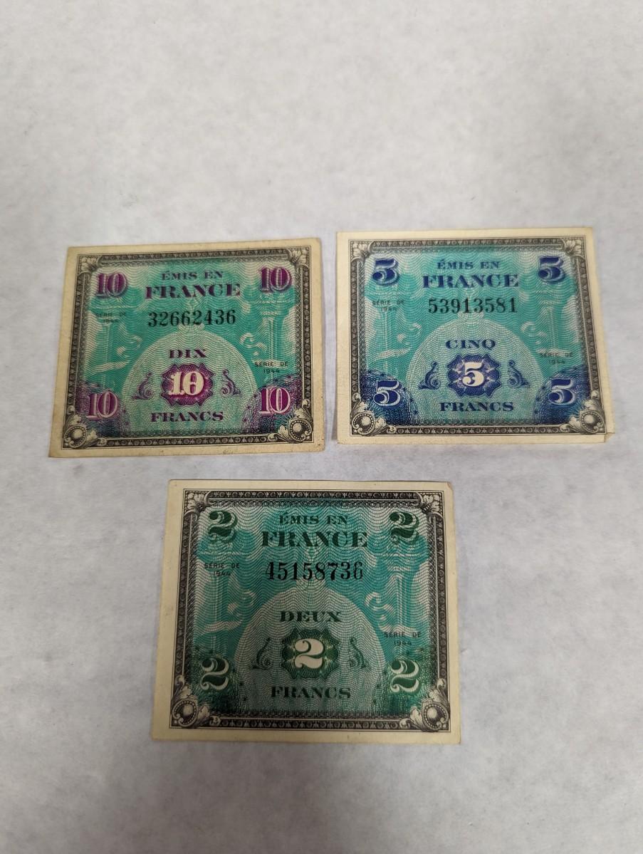 1944 WWII Era France Banknotes Francs 2 - 5 - 10