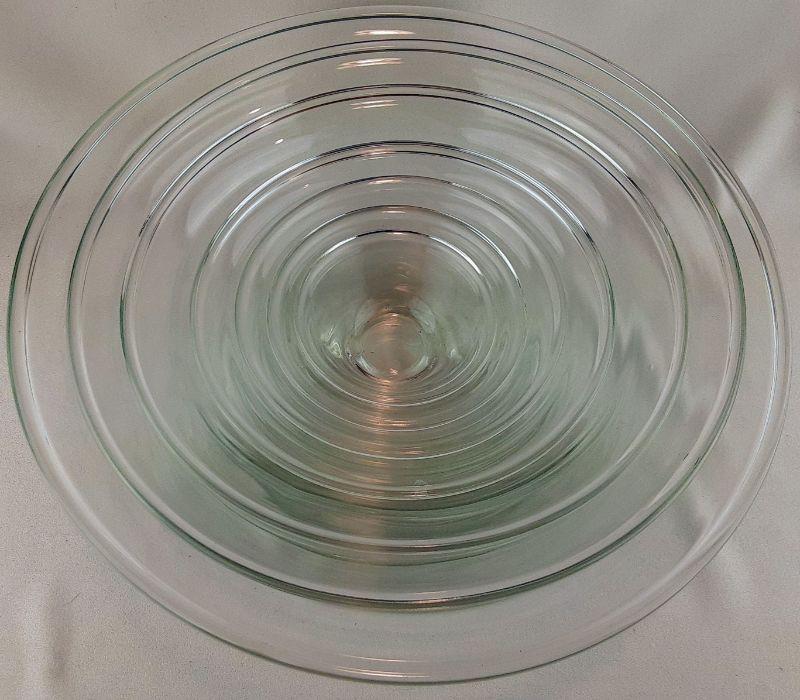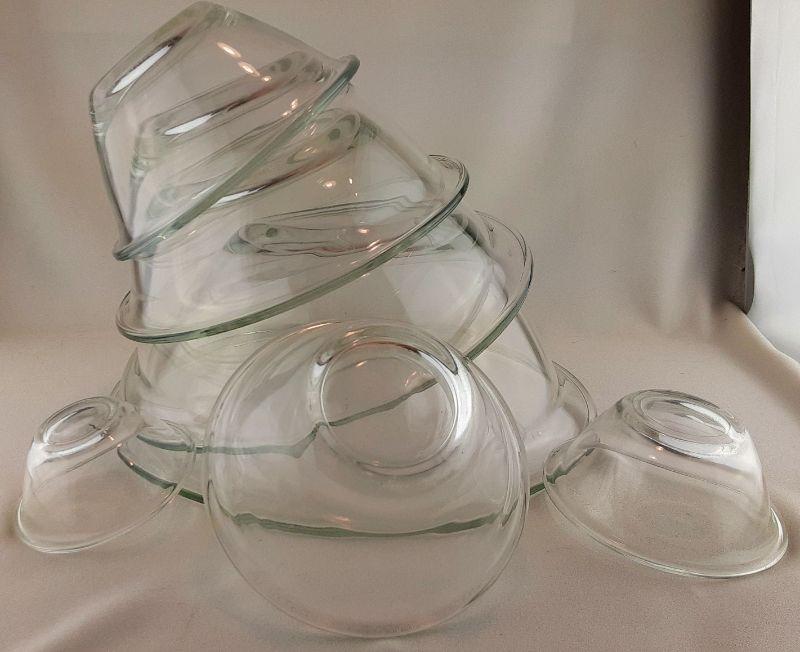 7 glass nesting bowls small to large diameters. 3.5in, 4.25, 5.25, 6.5, 8.5, 10, 12in.
