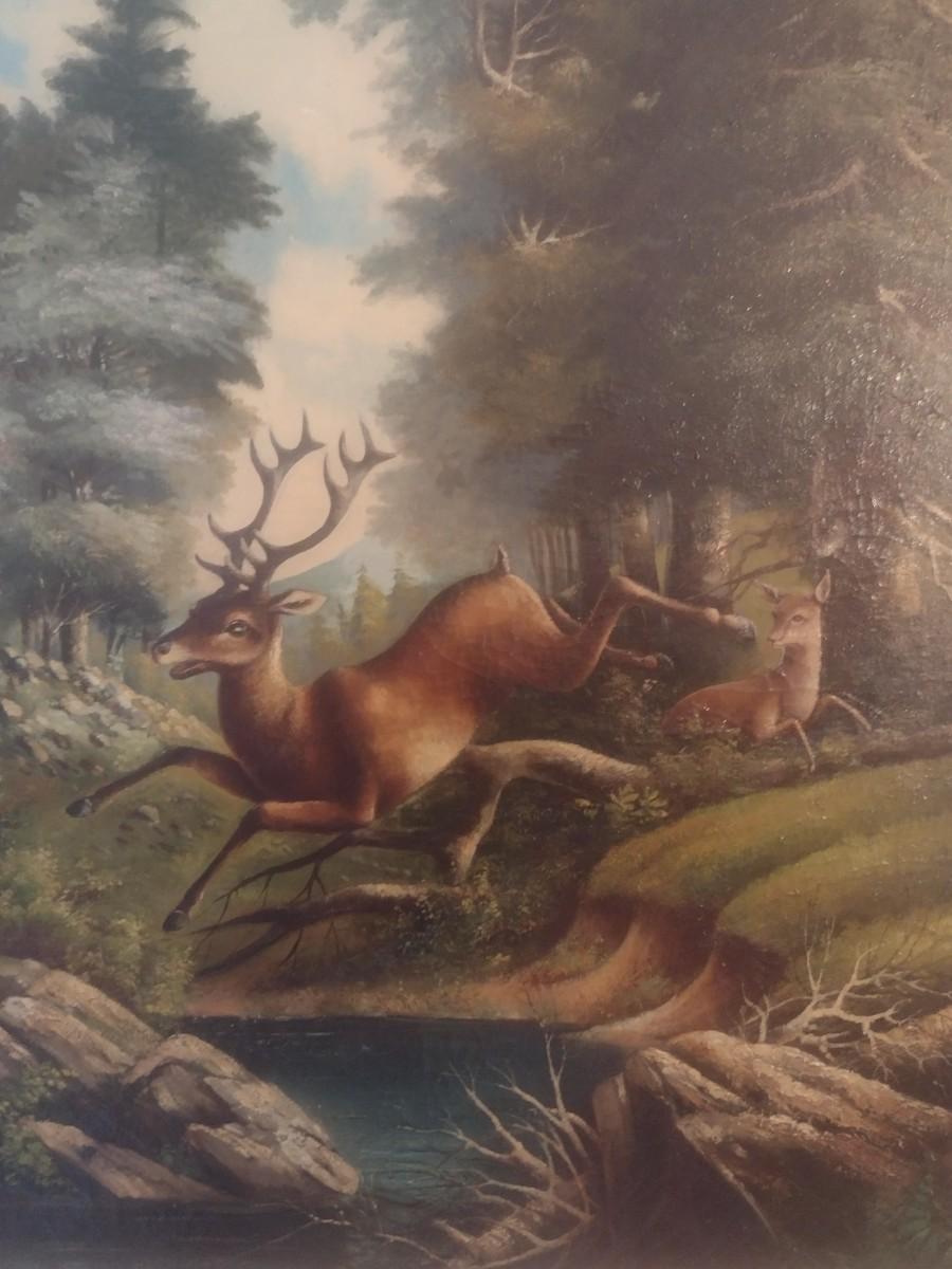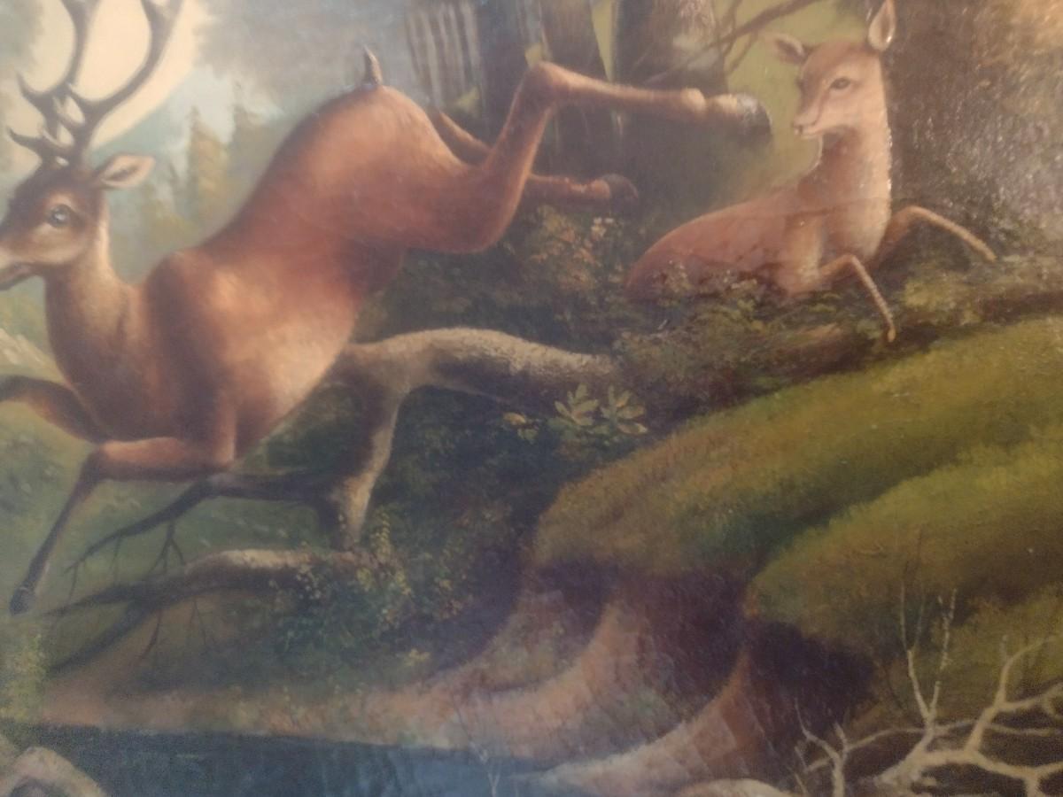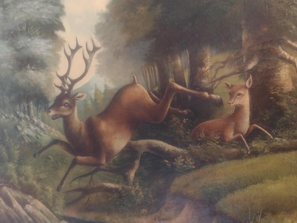 Francis A. Cerny Original Oil on Canvas Stag and Doe Circa 1890 Framed