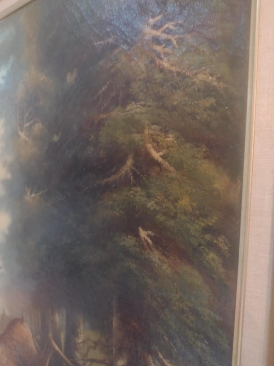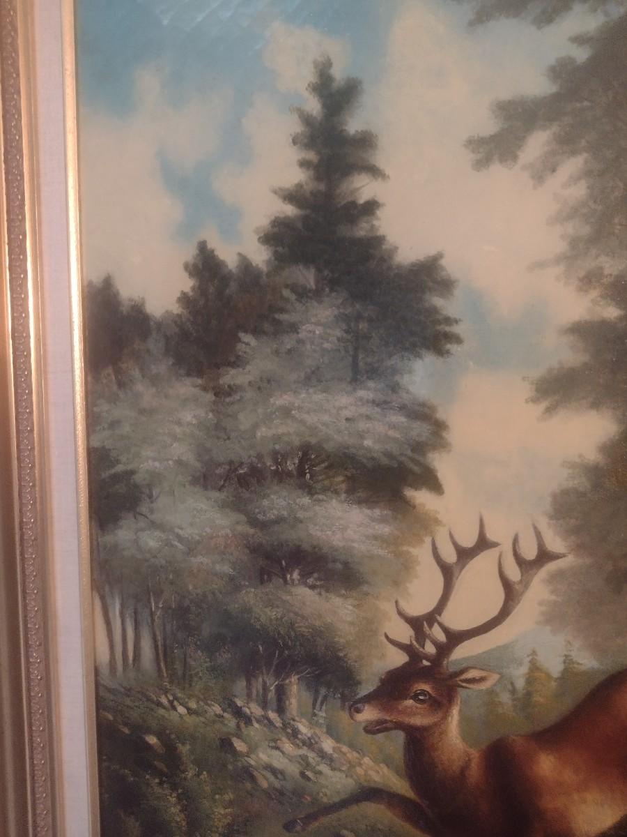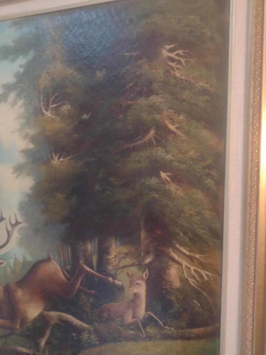Francis A. Cerny Original Oil on Canvas Stag and Doe Circa 1890 Framed