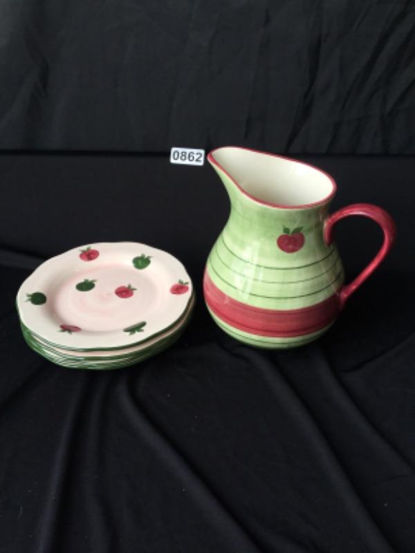 Franciscan Apple Pie Pitcher and 4 Apple plates lot 862