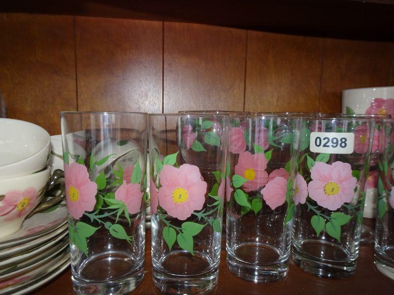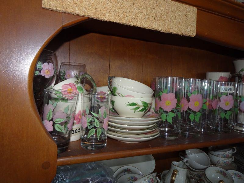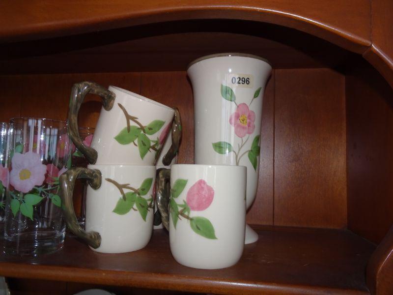 Franciscan Desert Rose China, Cup & Saucers, Water Glasses, Wine Glasses, Beautiful Flower Vase