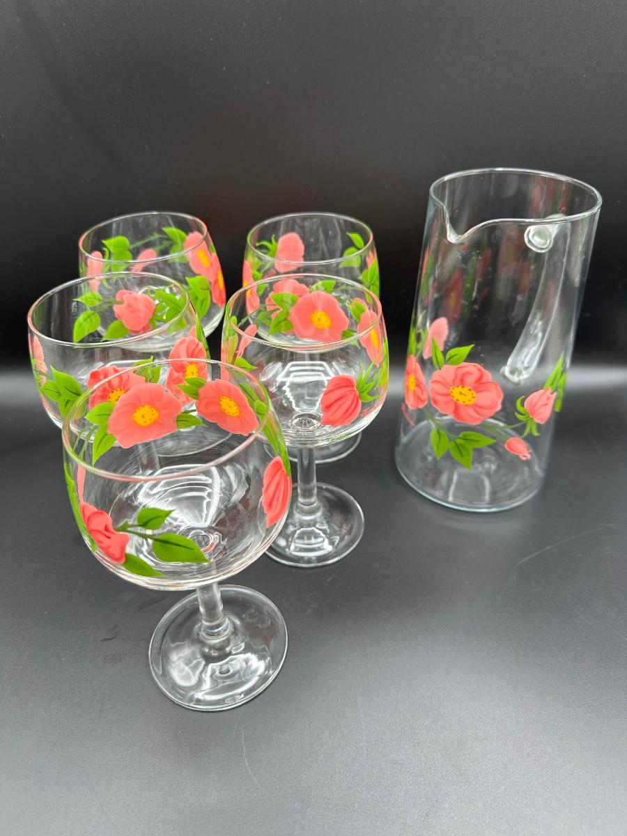 FRANCISCAN “Desert Rose” Goblets & Glass Pitcher
