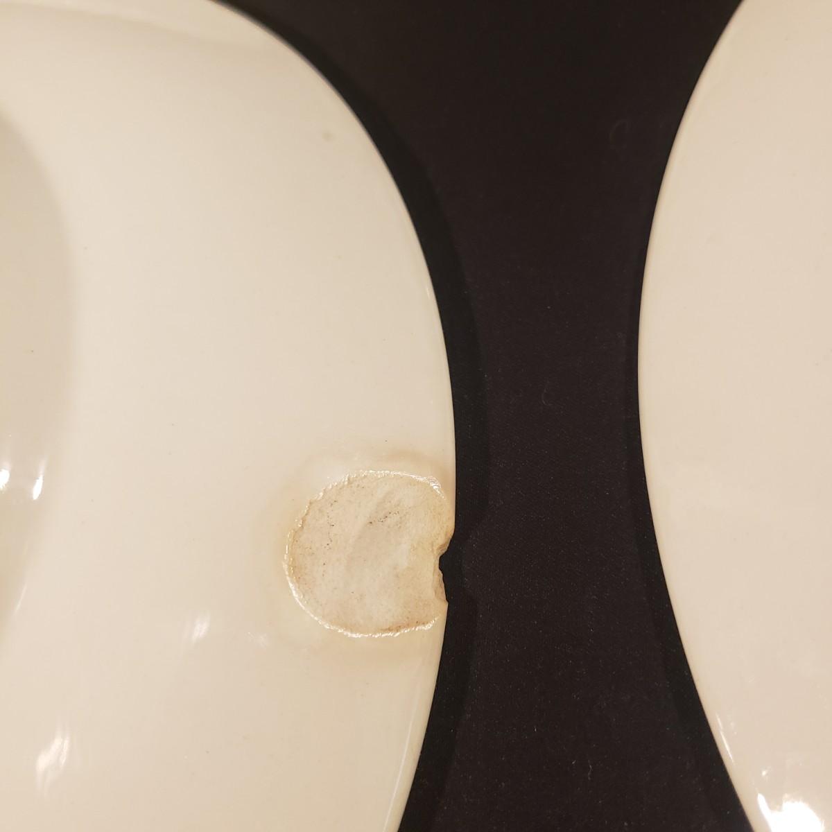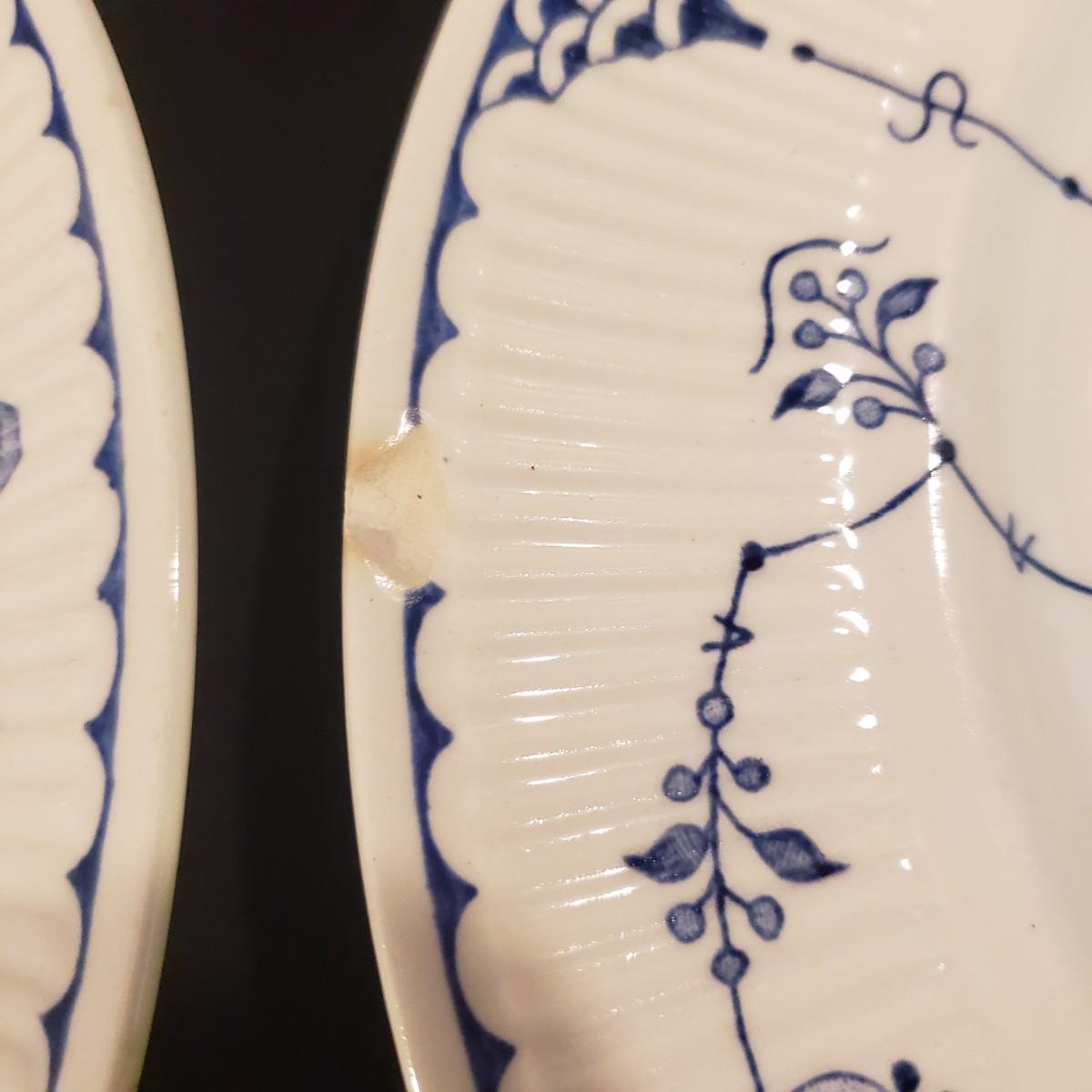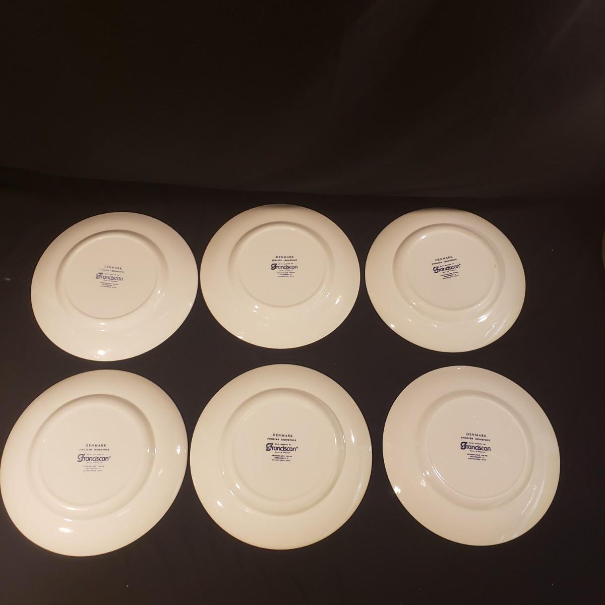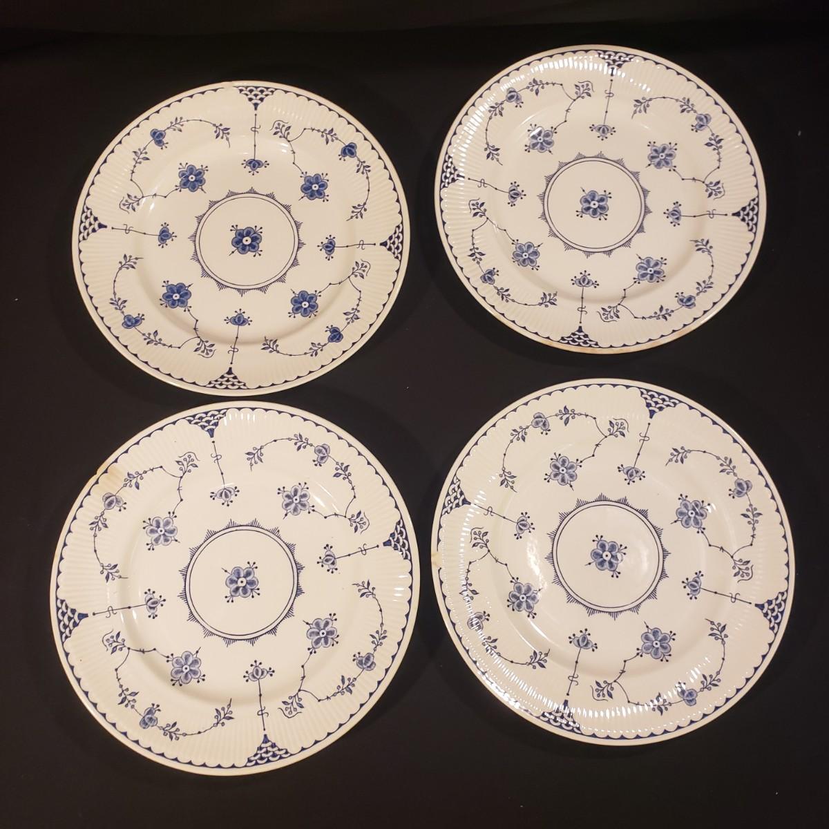 10 dinner plates (10") The picture with 4 plates either have a chip or discoloration, see pictures for details. The picture with 6 plates all appear to be in good condition.