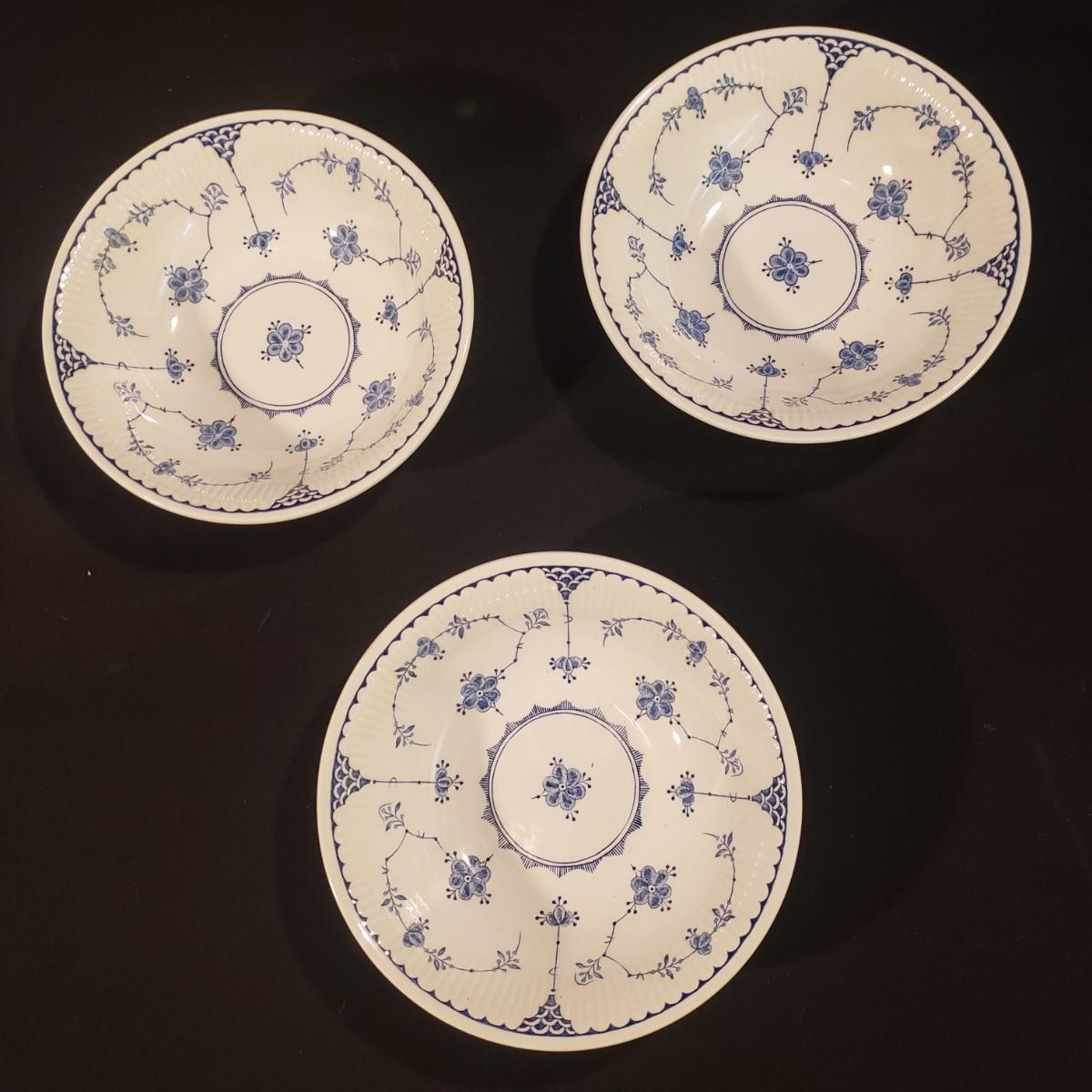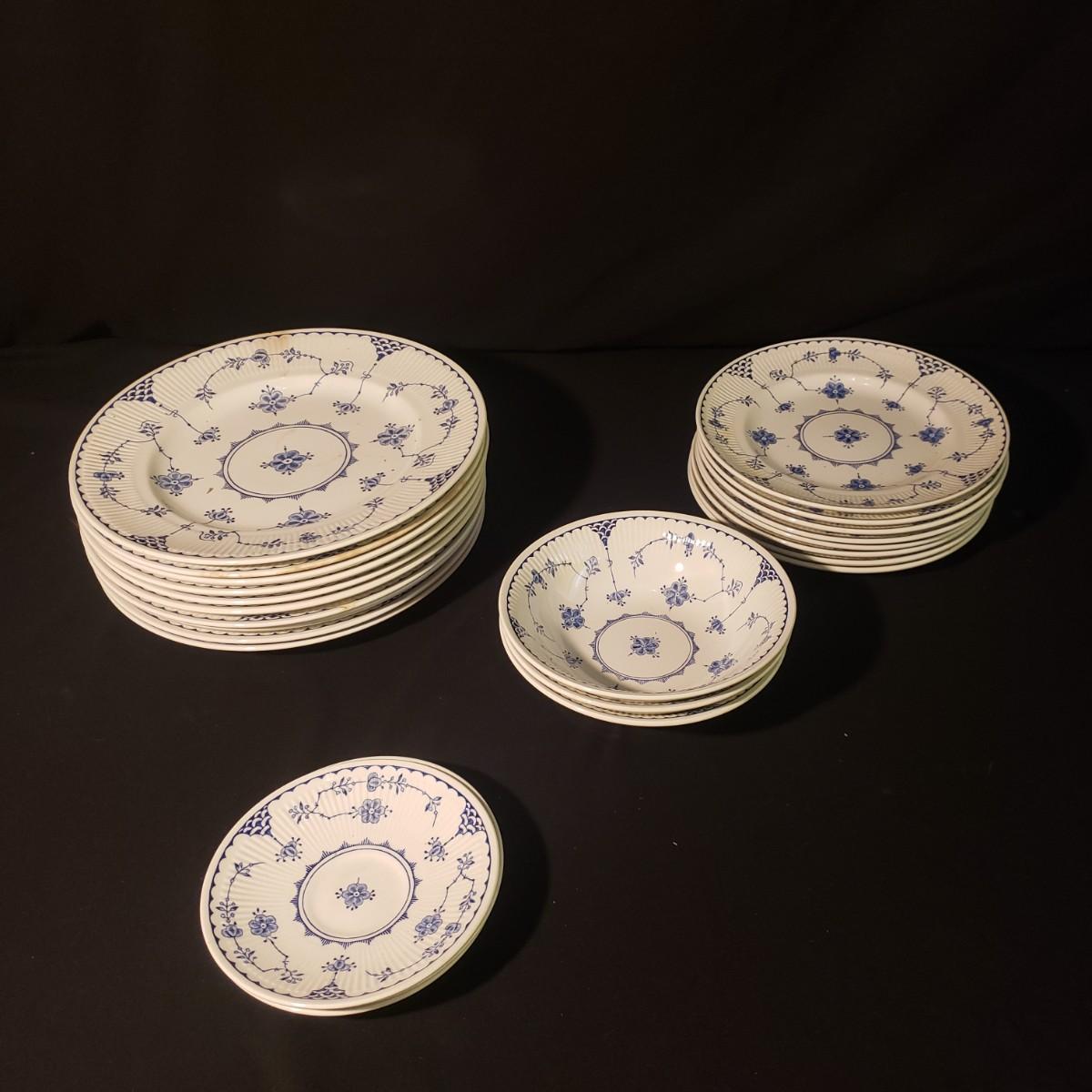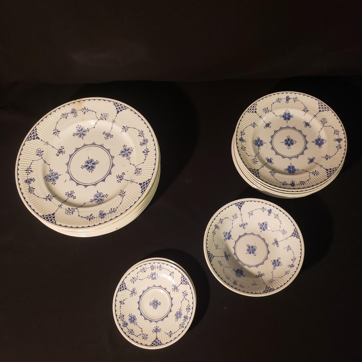 This lot of Denmark Blue by Franciscan are made in England. They are discontinued. and had a circulation between 1983 - 1988.