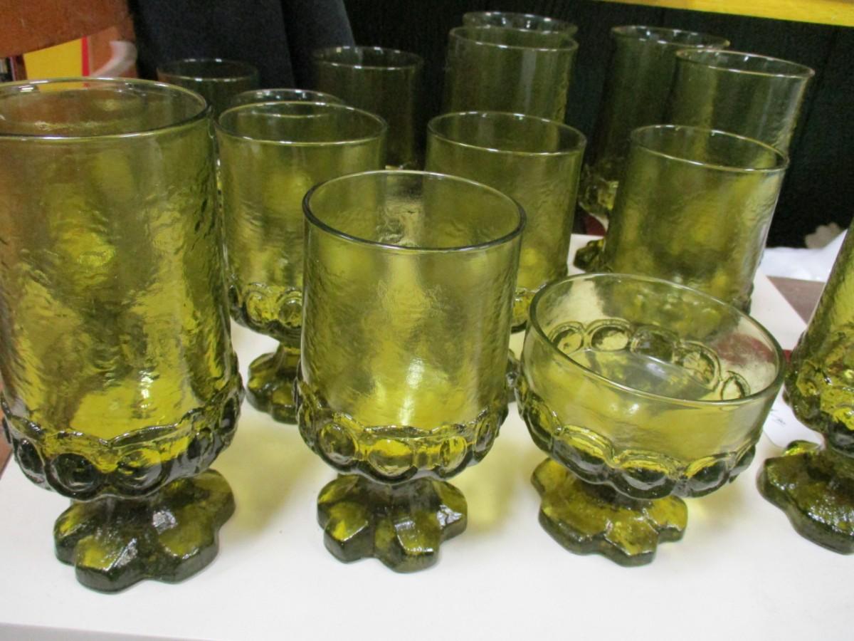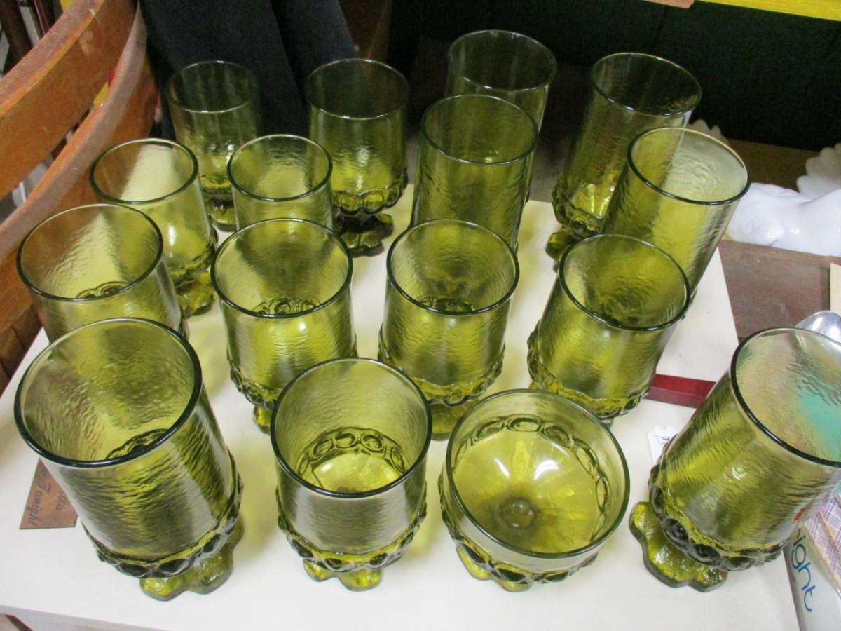 22 Pieces - Uranium Franciscan Madeira Olive Green Glasses