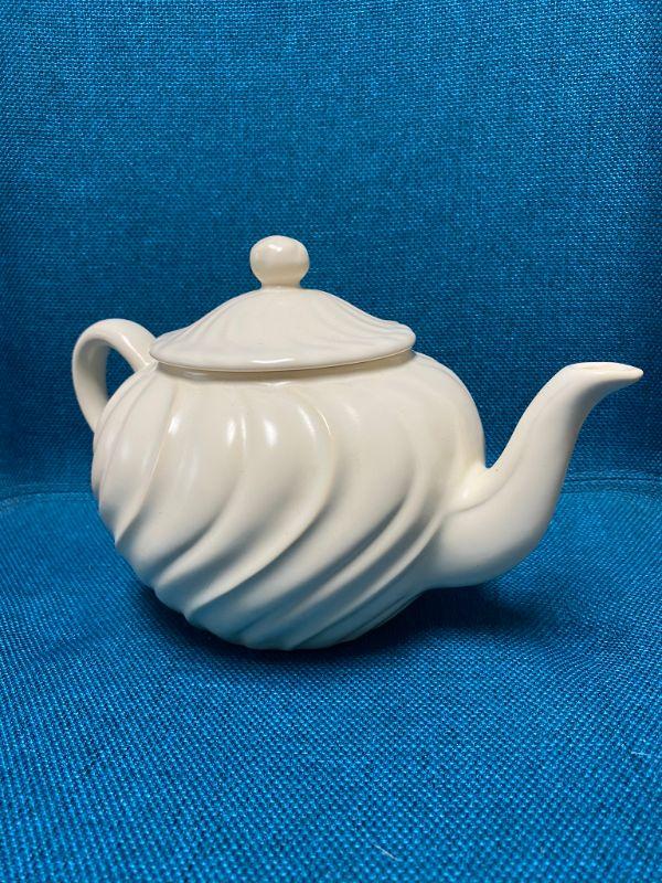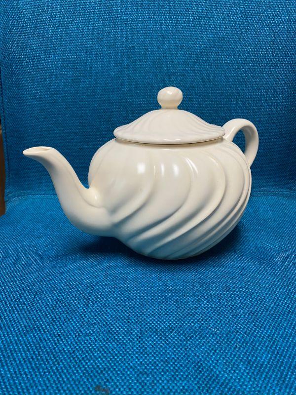 Vintage Franciscan Ware Teapot. "Coronado Swirl" in white. Previously used but in good condition.
