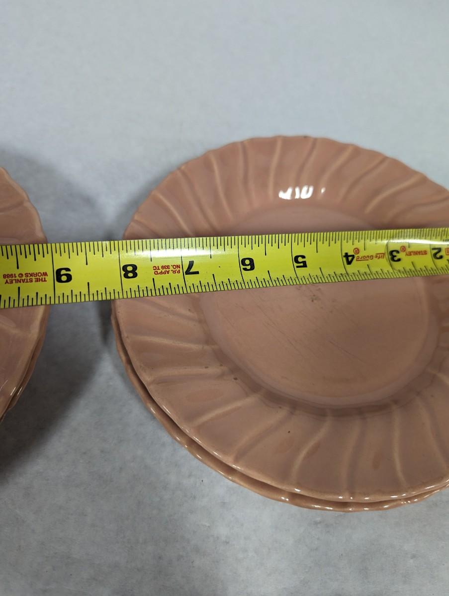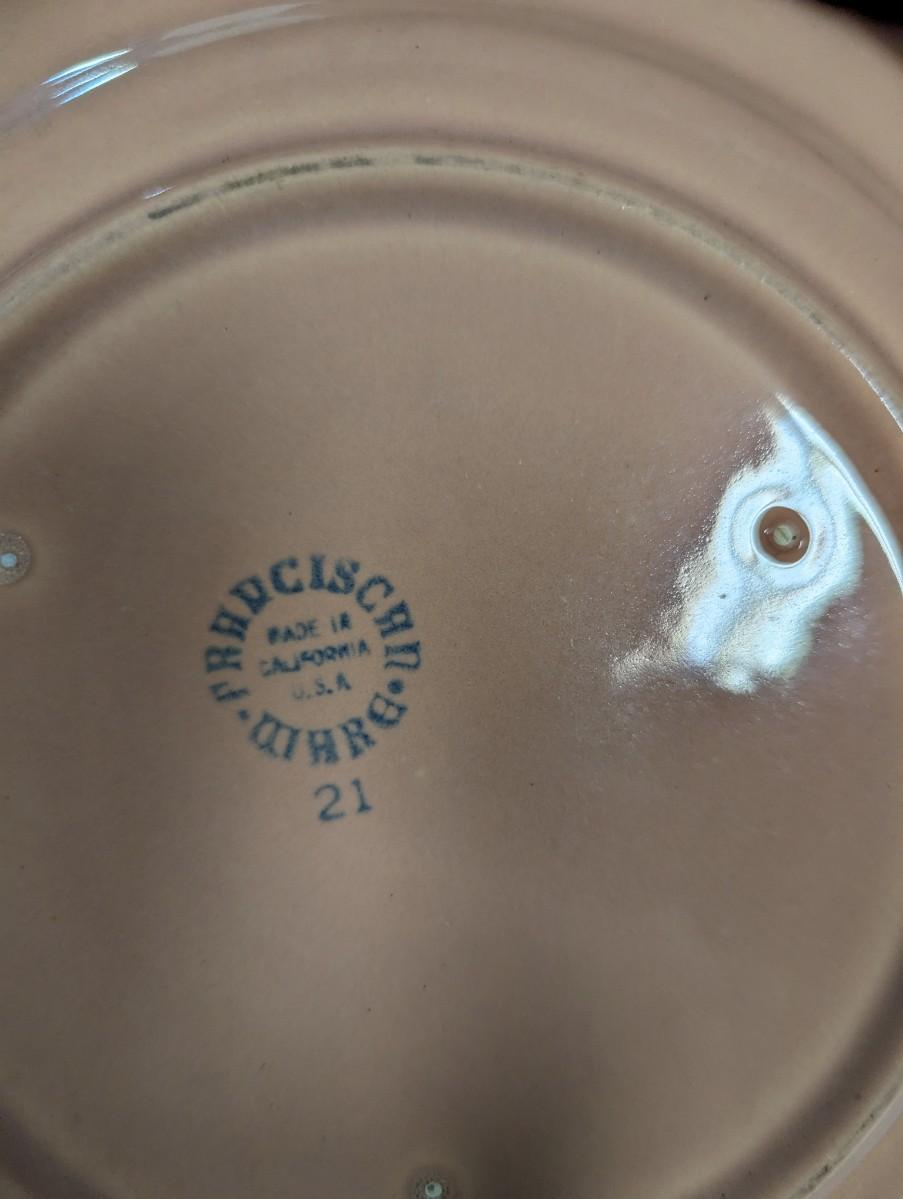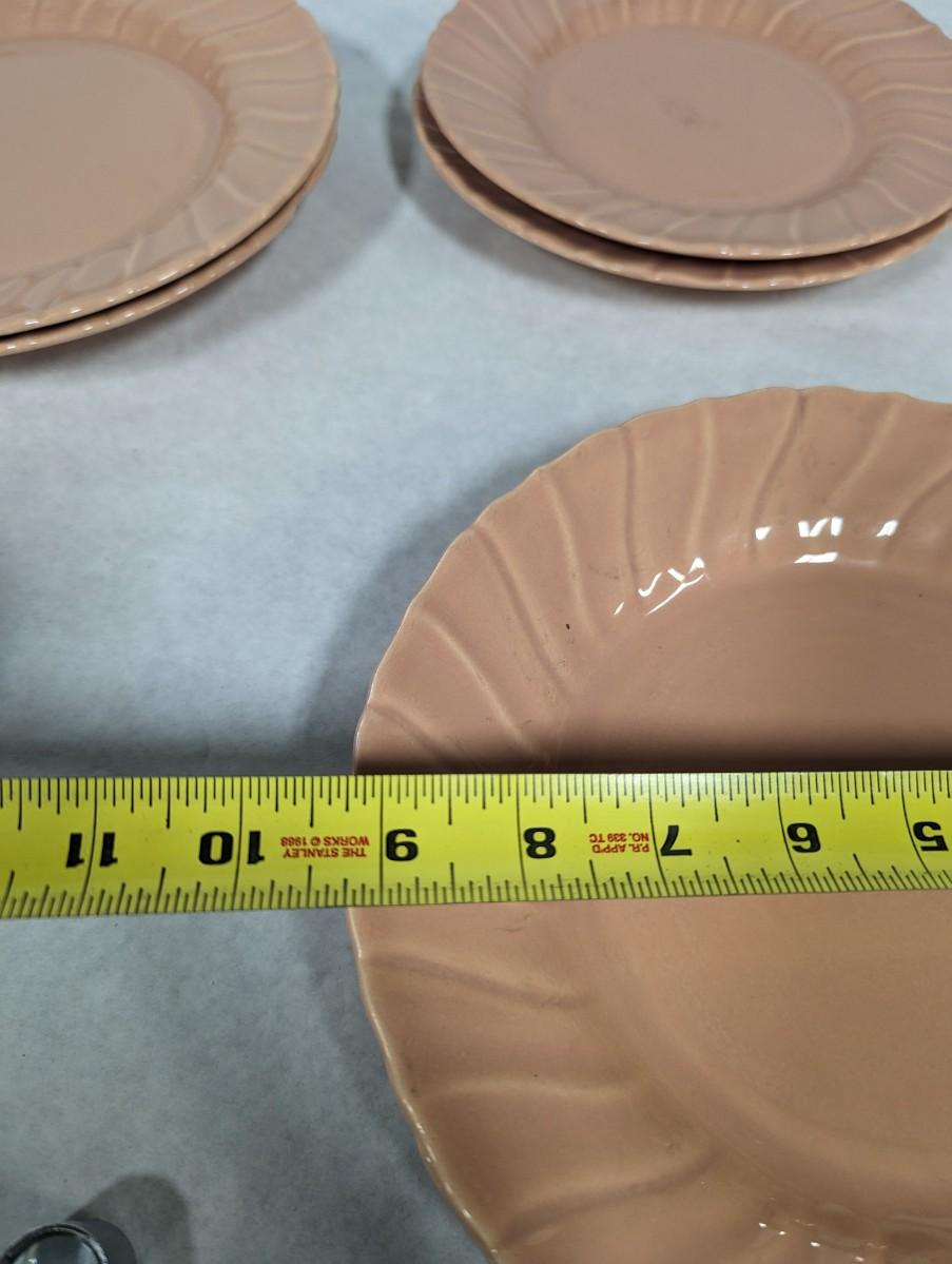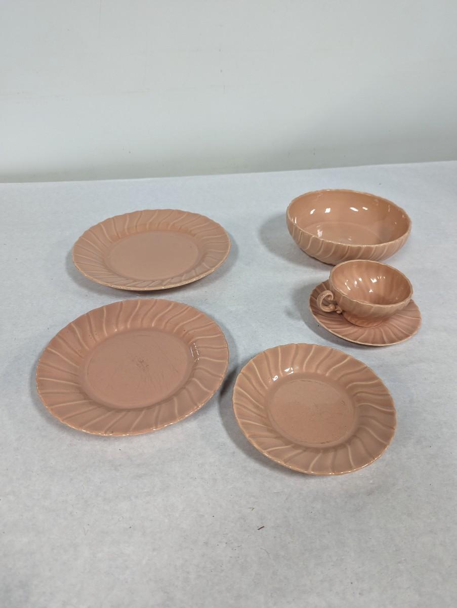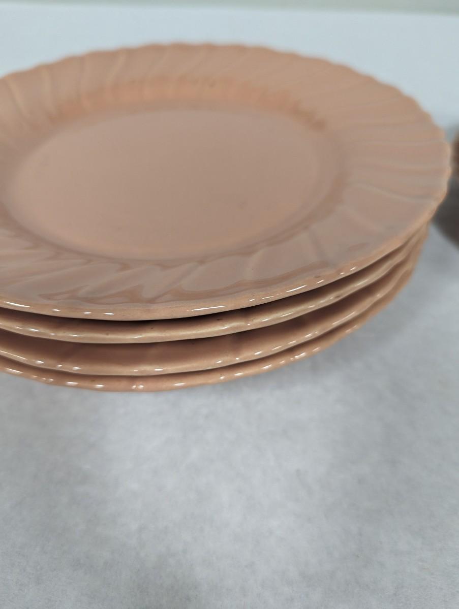 4 dinner plates, 1 bowl, 3 salad plates, 3 bread plates, 5 saucers, and 4 cups. I did notice a chip