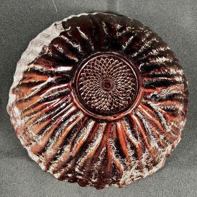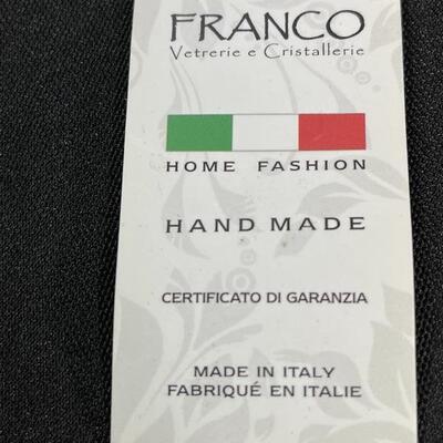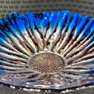 Up for auction is a ribbed blue glass dish made by Franco of Italy. It is brand new with its original tags. Measures approximately 8 inches in diameter.