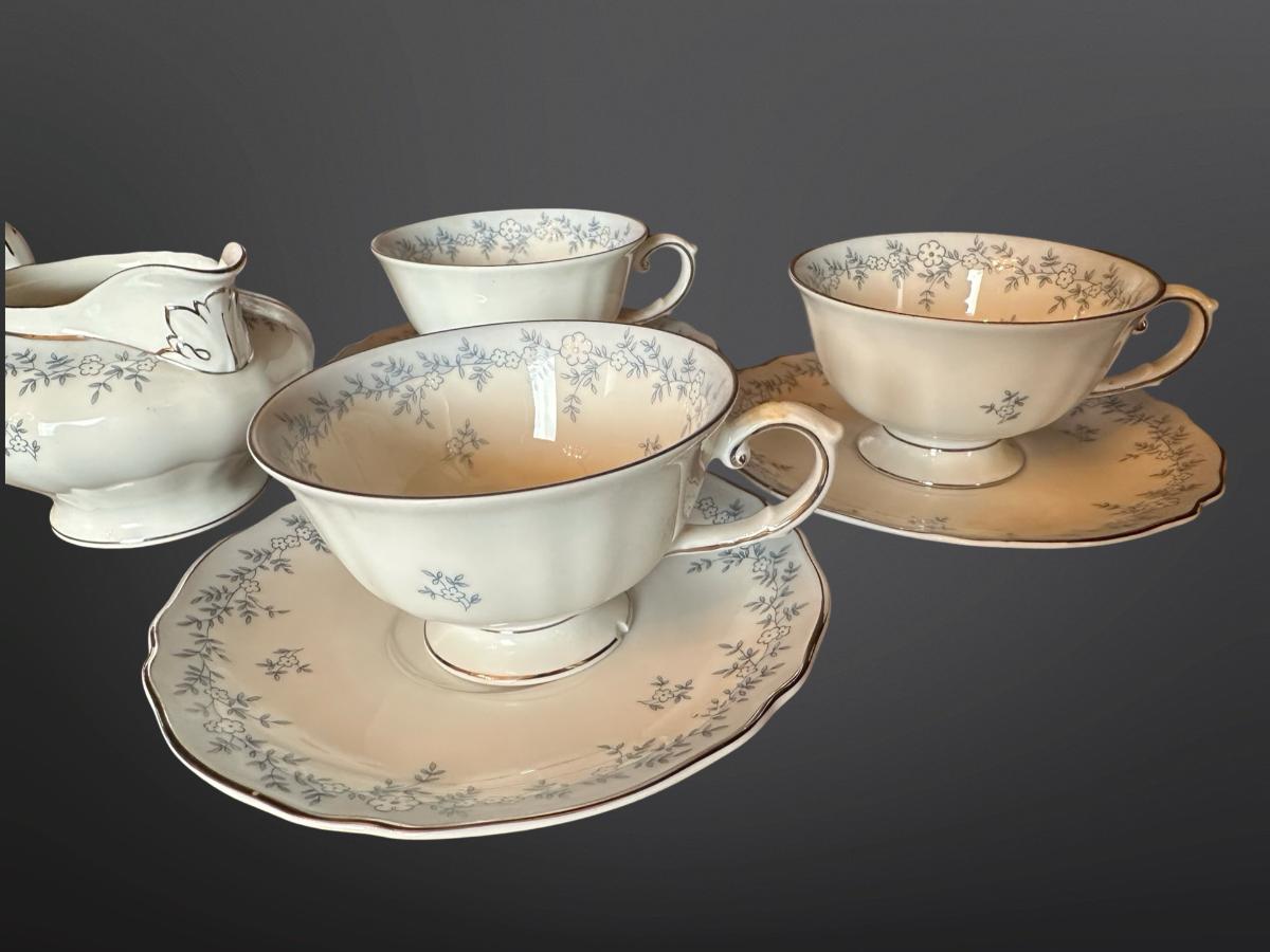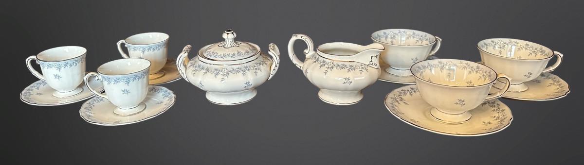 Franconia Delphine Tea & Coffee Set – Cups, Saucers, Sugar, and Creamer.