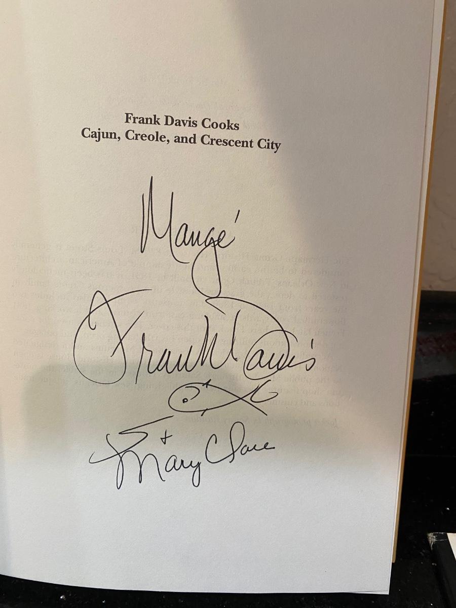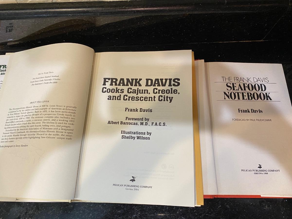 Frank Davis Cookbook Lot: autographed copy of “Frank Davis Cooks Cajun, Creole, and Crescent City”, and “The Frank Davis Seafood Notebook”