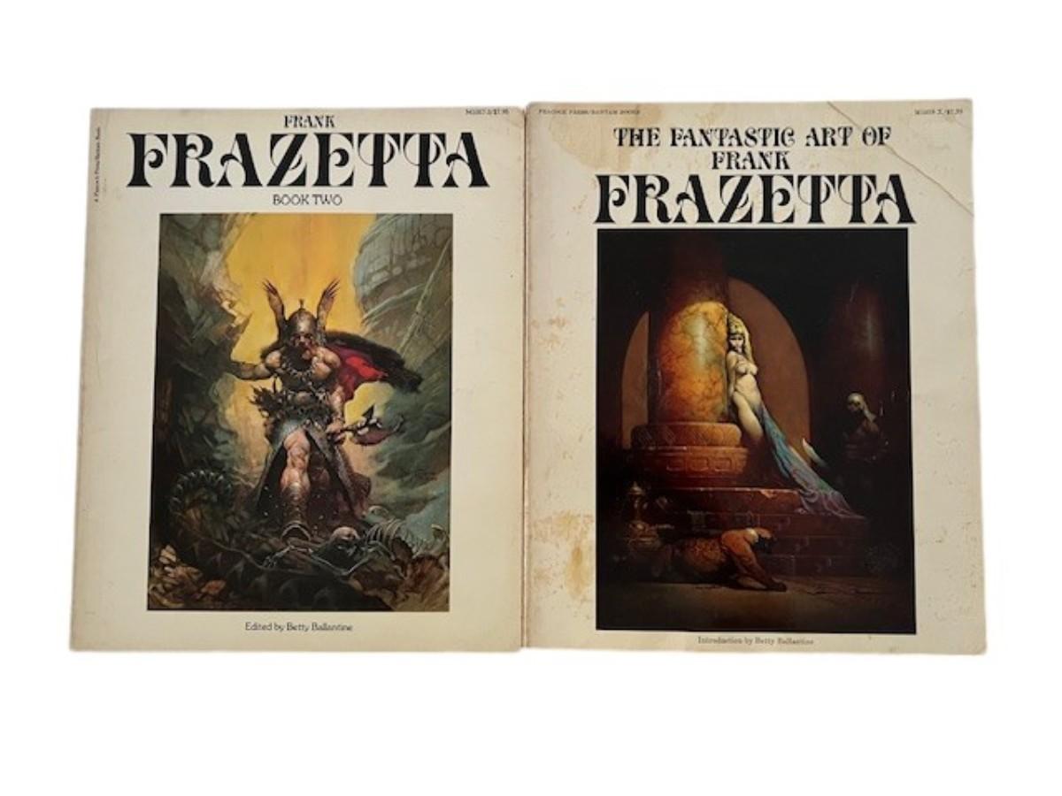 Includes "The Fantastic Art of Frank Frazetta" and "Frank Frazetta Book Two." Total of 2 pieces. Age related wear. Measurement: 11" x 9" (each). [LV]