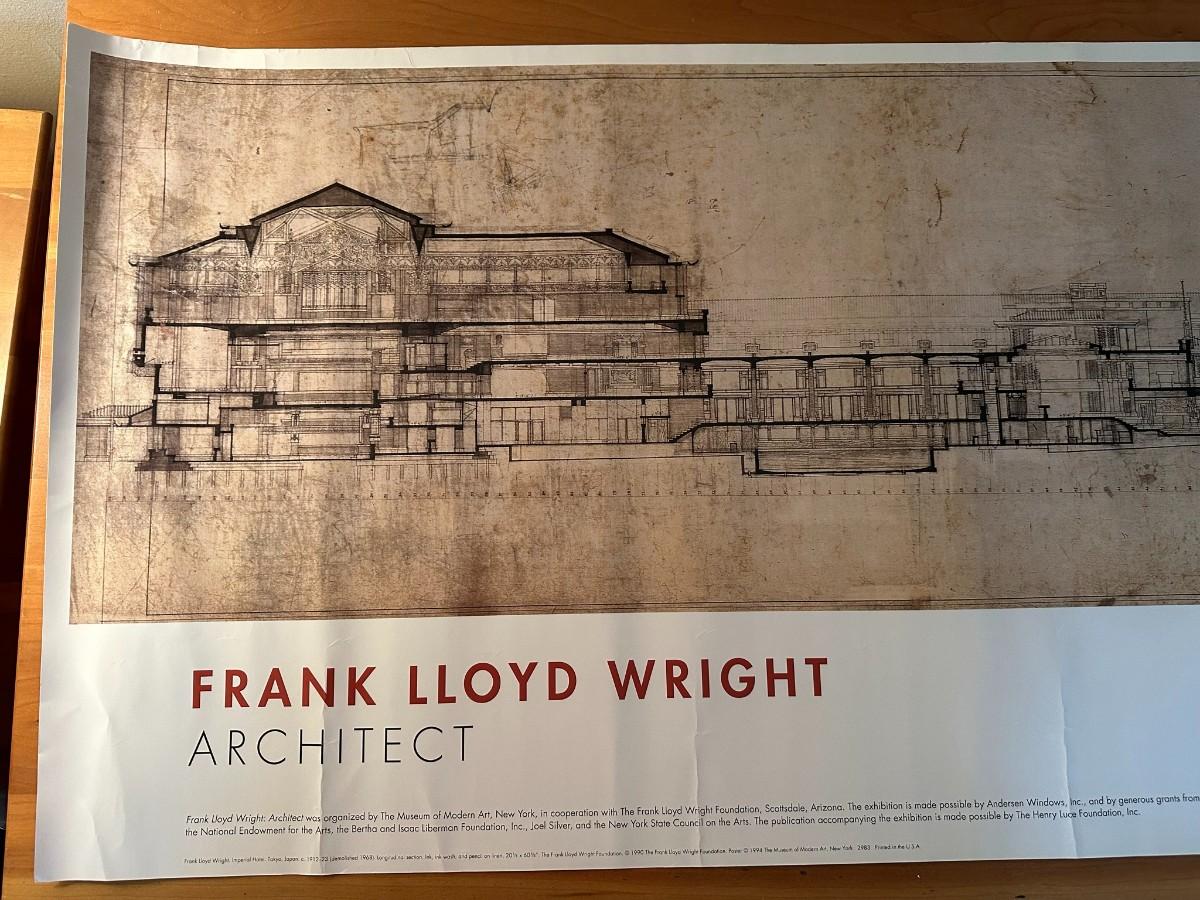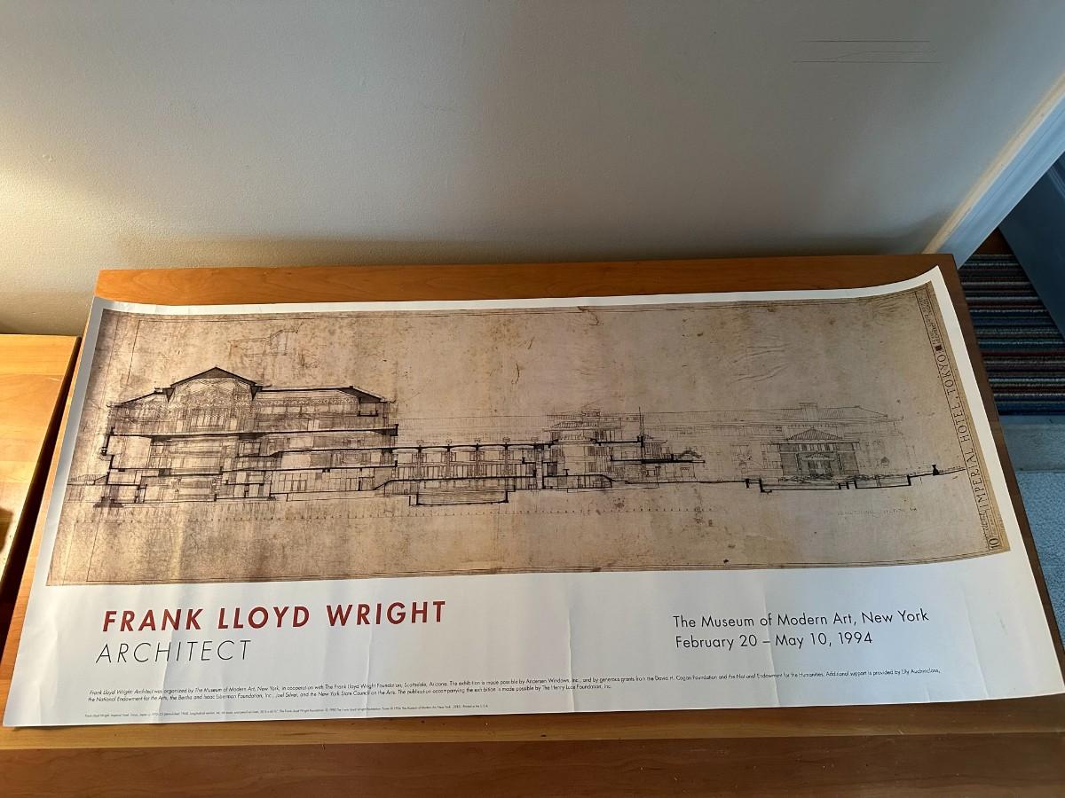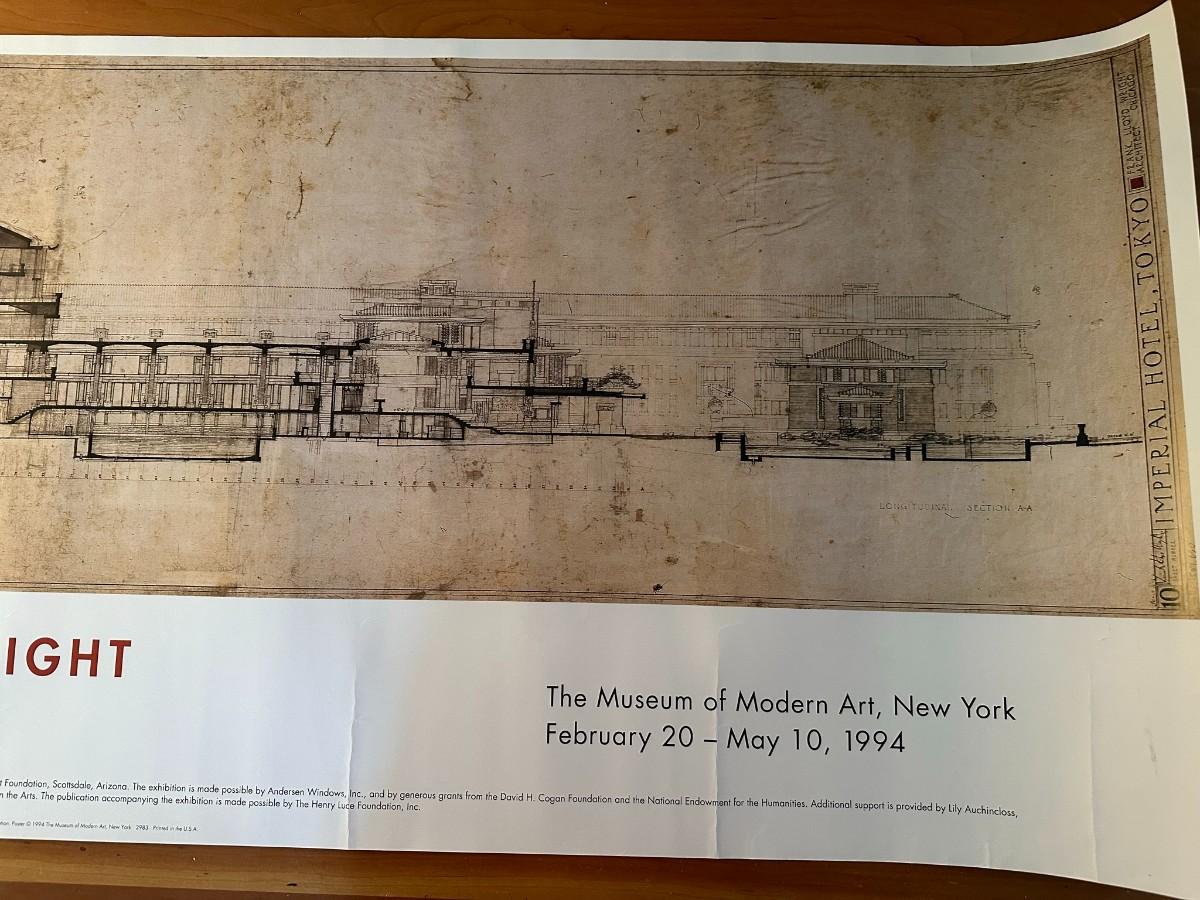 Poster says "The Museum of Modern Art, New York, February 20-May 10, 1994" and depicts the Imperial Hotel Tokyo. 39"W x 18"H