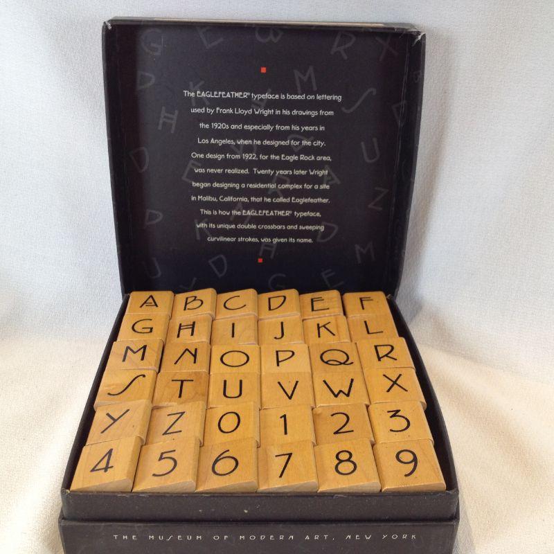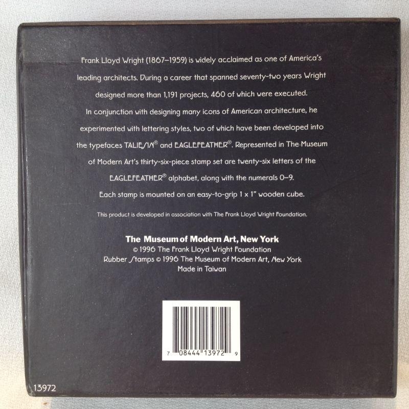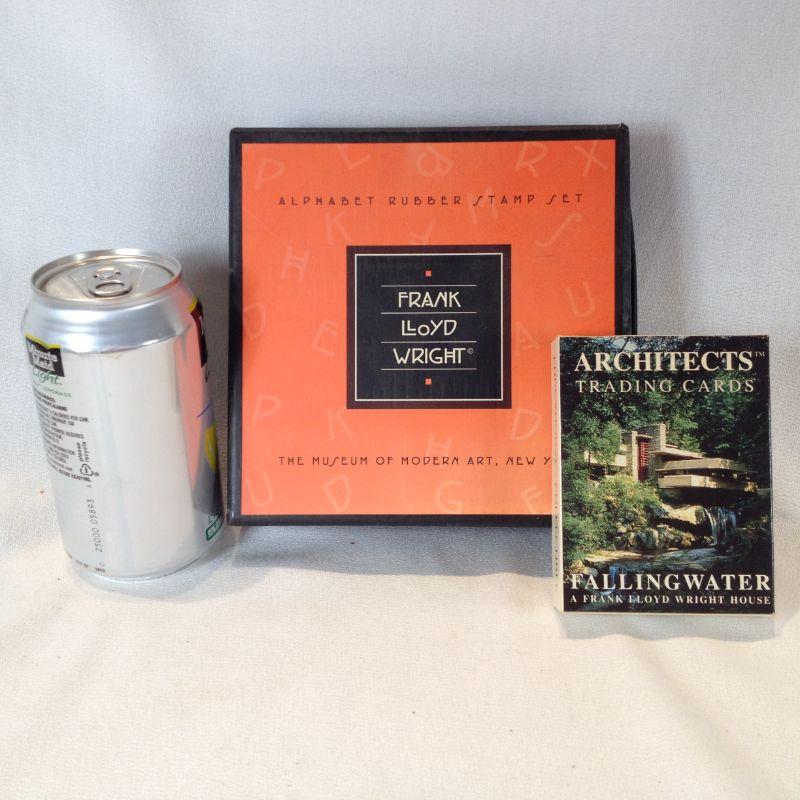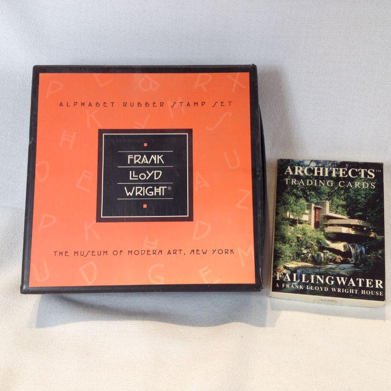 This is a fun lot that includes Frank Lloyd Wright's alphabet style in a rubber stamp kit and a set of Falling Water Architects Trading Cards. Both items are complete and appear unused. Another fine and unusual gift. The starting bid is $10.00.