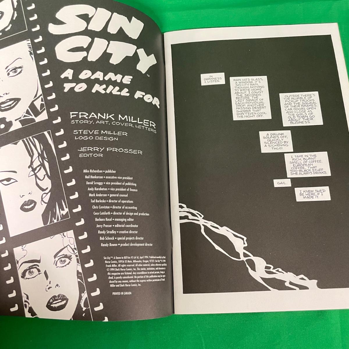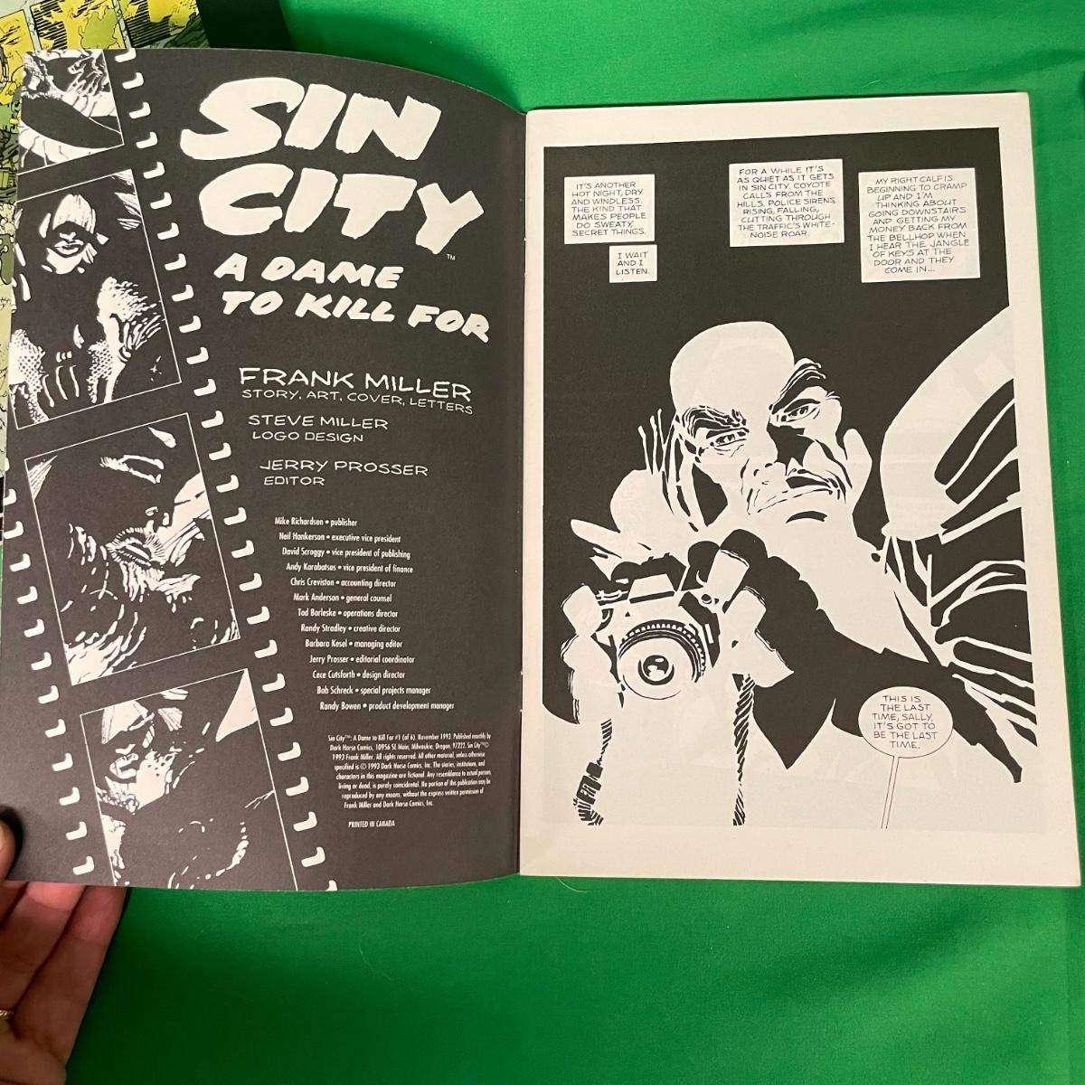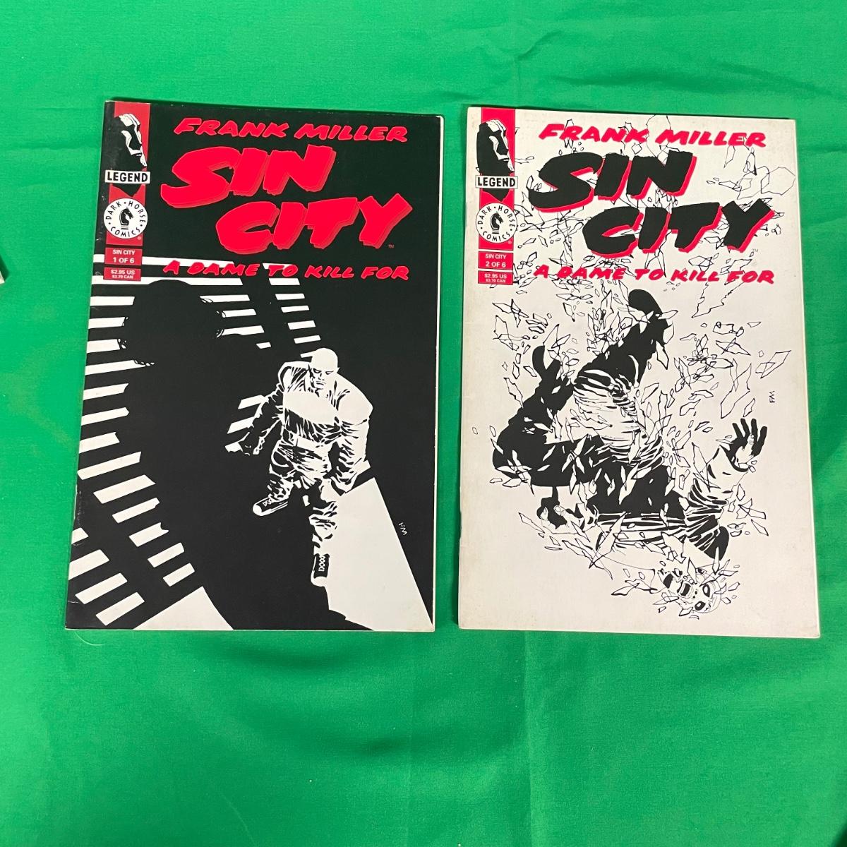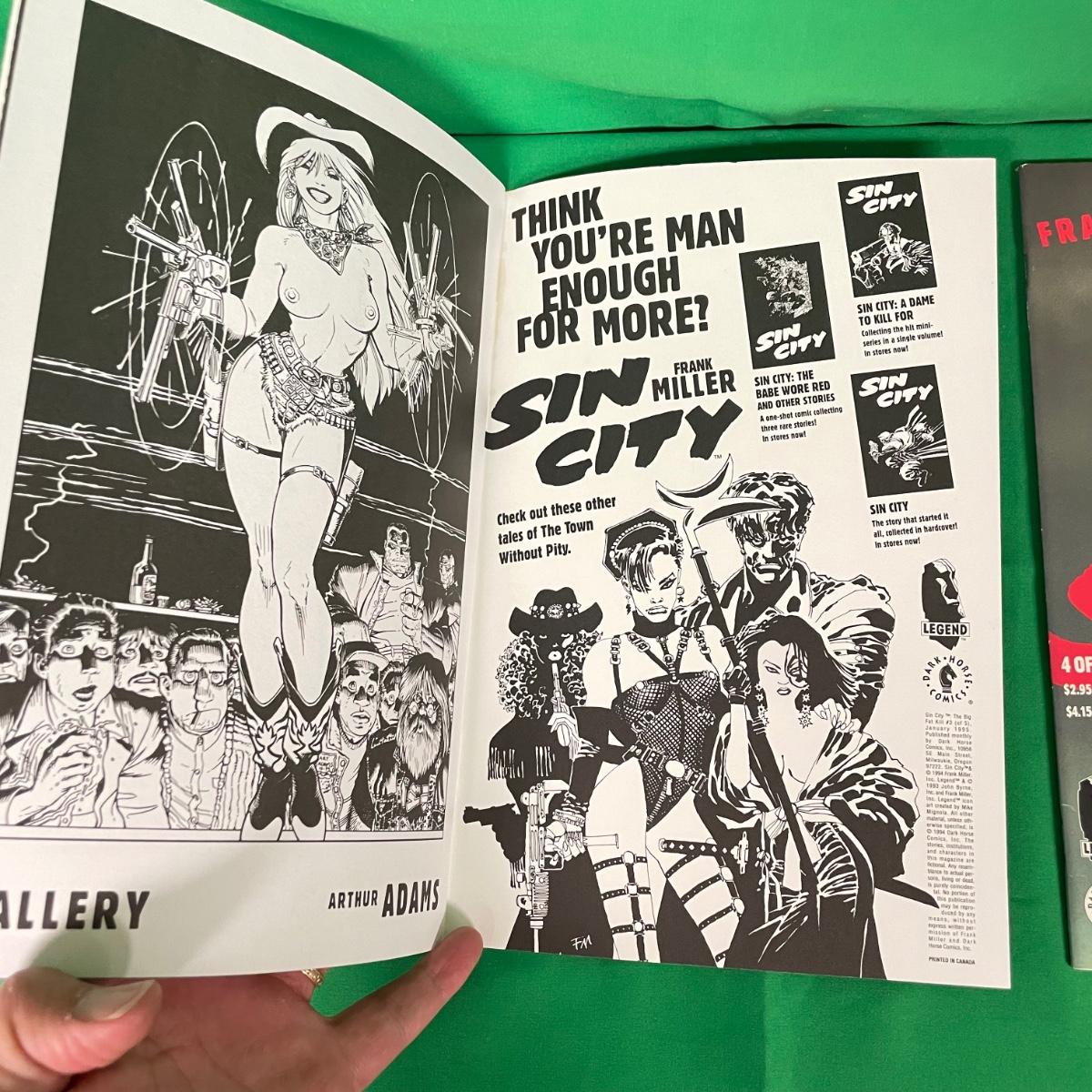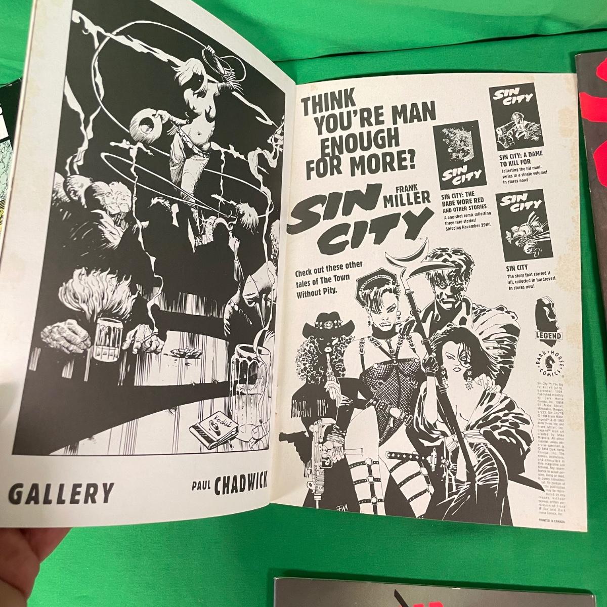 Complete set 1-5 of Frank Miller’s Sin City The Big Fat Kill with a second copy of volume 5 in plastic protection. Volumes 1, 2, 5 of Sin City A Dame to Kill For, 1994’s Sin City The Babe Wore Red and Other Stories. Lot also features books one and two of Frank Miller’s 1983 Ronin. See images. Items are sold as-is. No returns or refunds. Please bid accordingly.