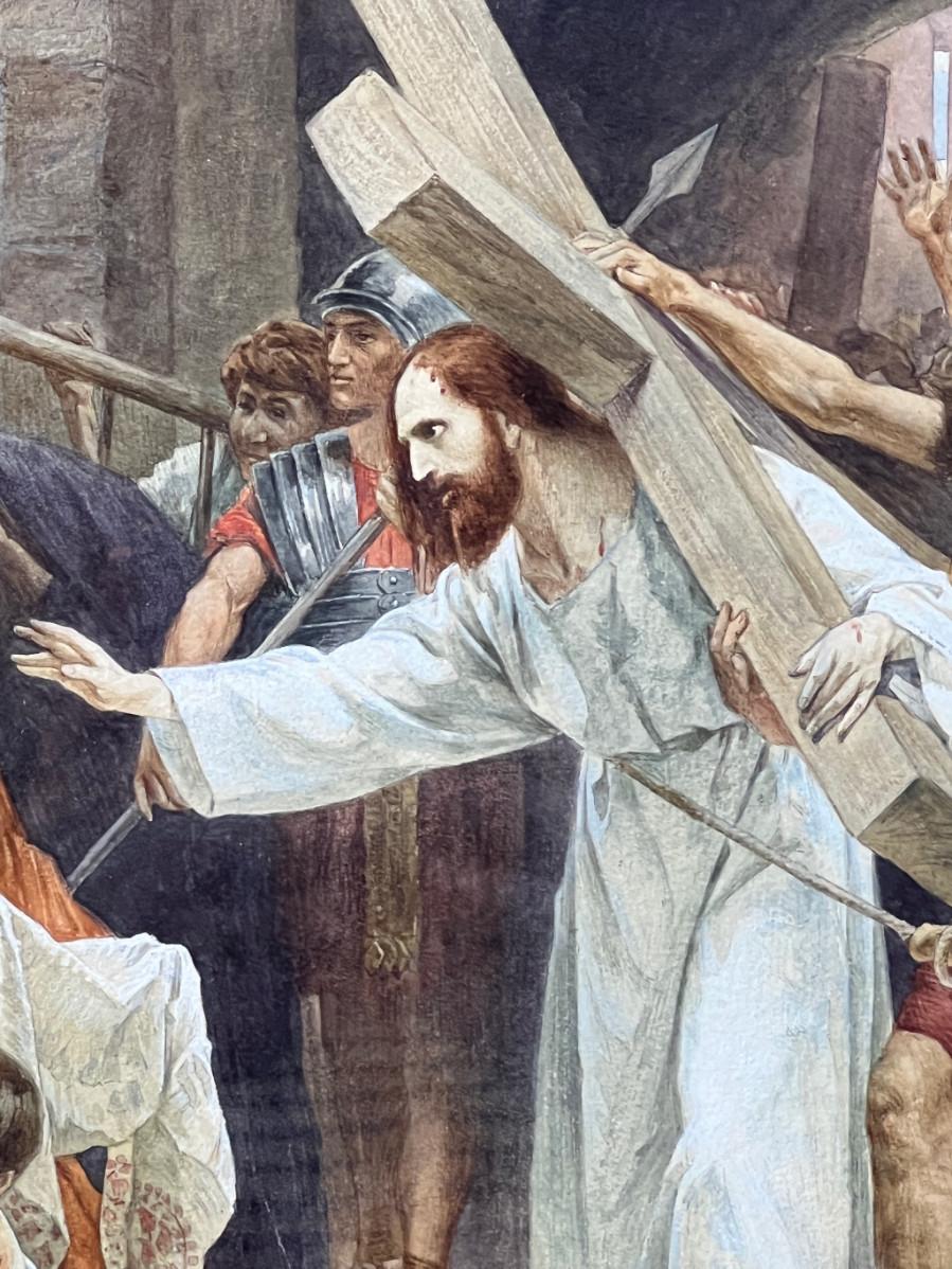 Frank Schlitzer Significant Watercolor of Christ carrying the cross to Calvary