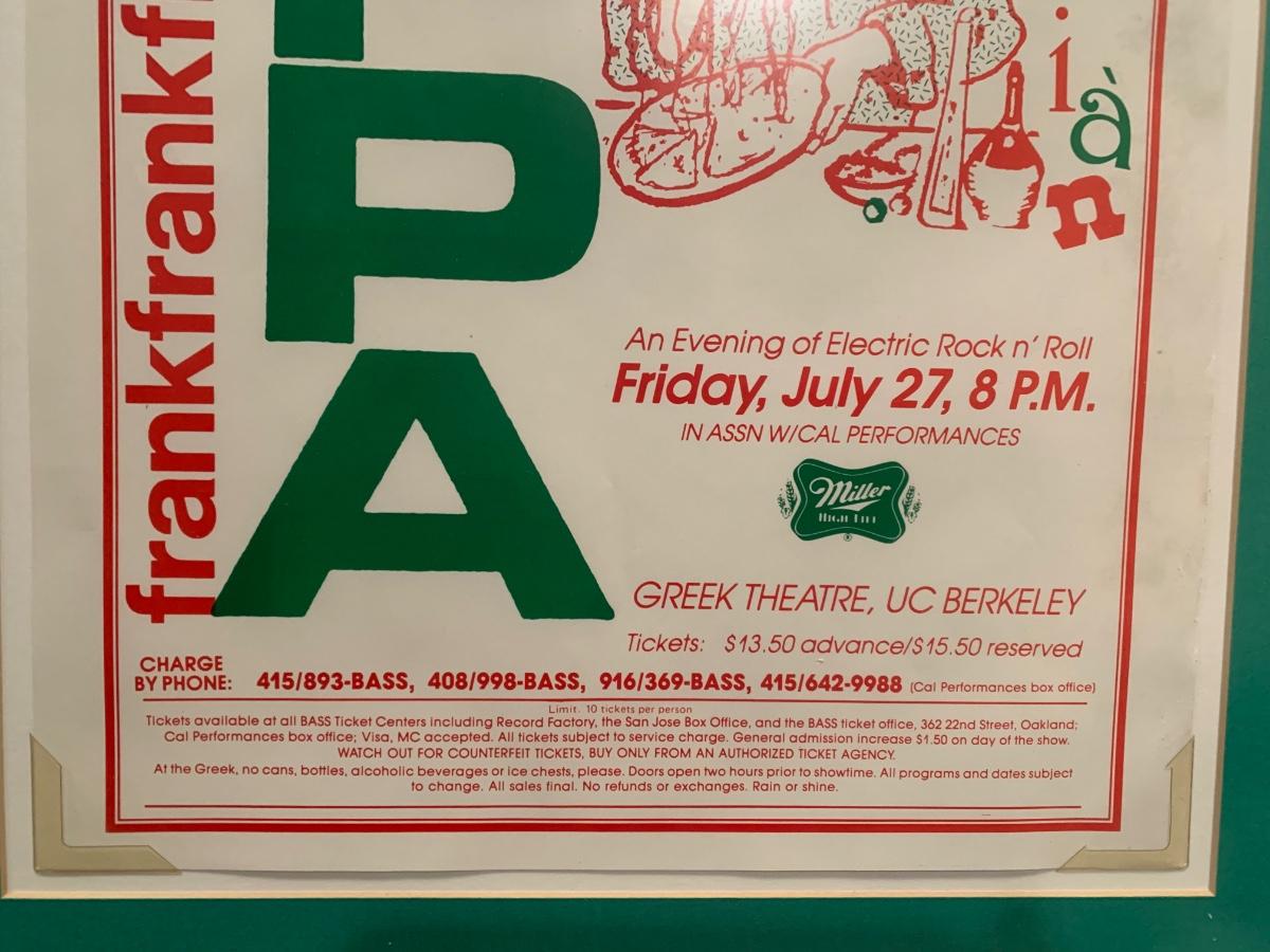 Frank Zappa Greek Theater Berkeley Concert Poster Framed
