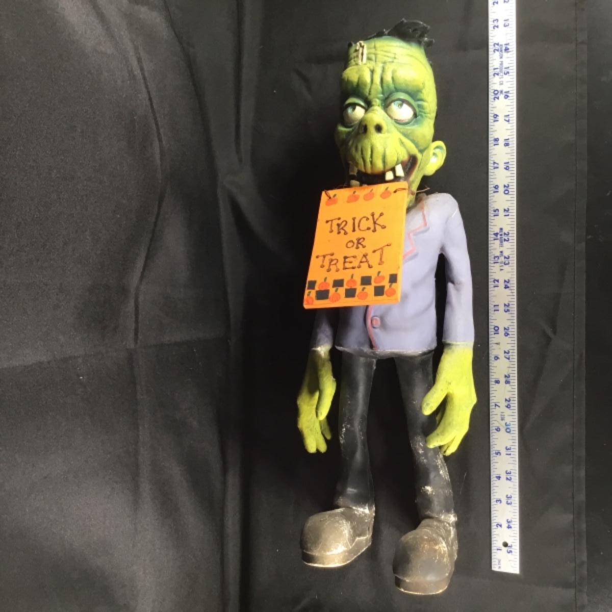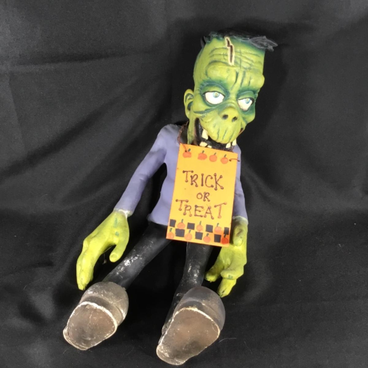 Up for auction is a pliable Frankenstein Halloween figure. It’s pliable and made up a rubbery material. Unmarked; see pictures.