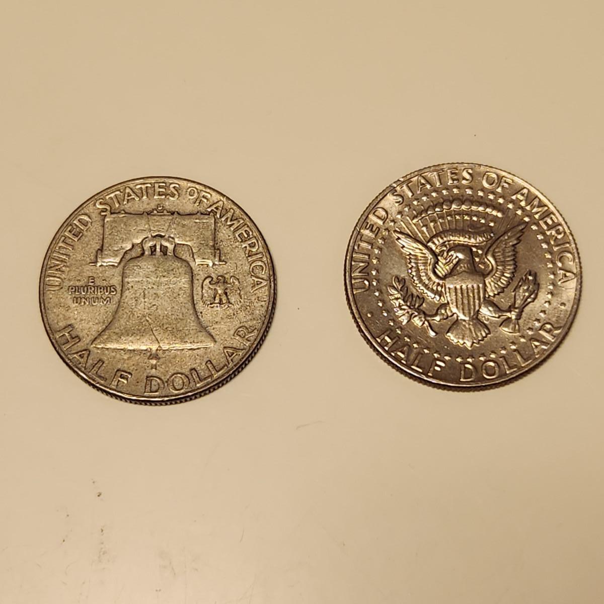 This lot is for Two Franklin and Kennedy Coins. This offering is for a 1983-P Kennedy Half Dollar and a 1953-D Benjamin Franklin Silver Half Dollar. This item is KY sales tax-exempt.