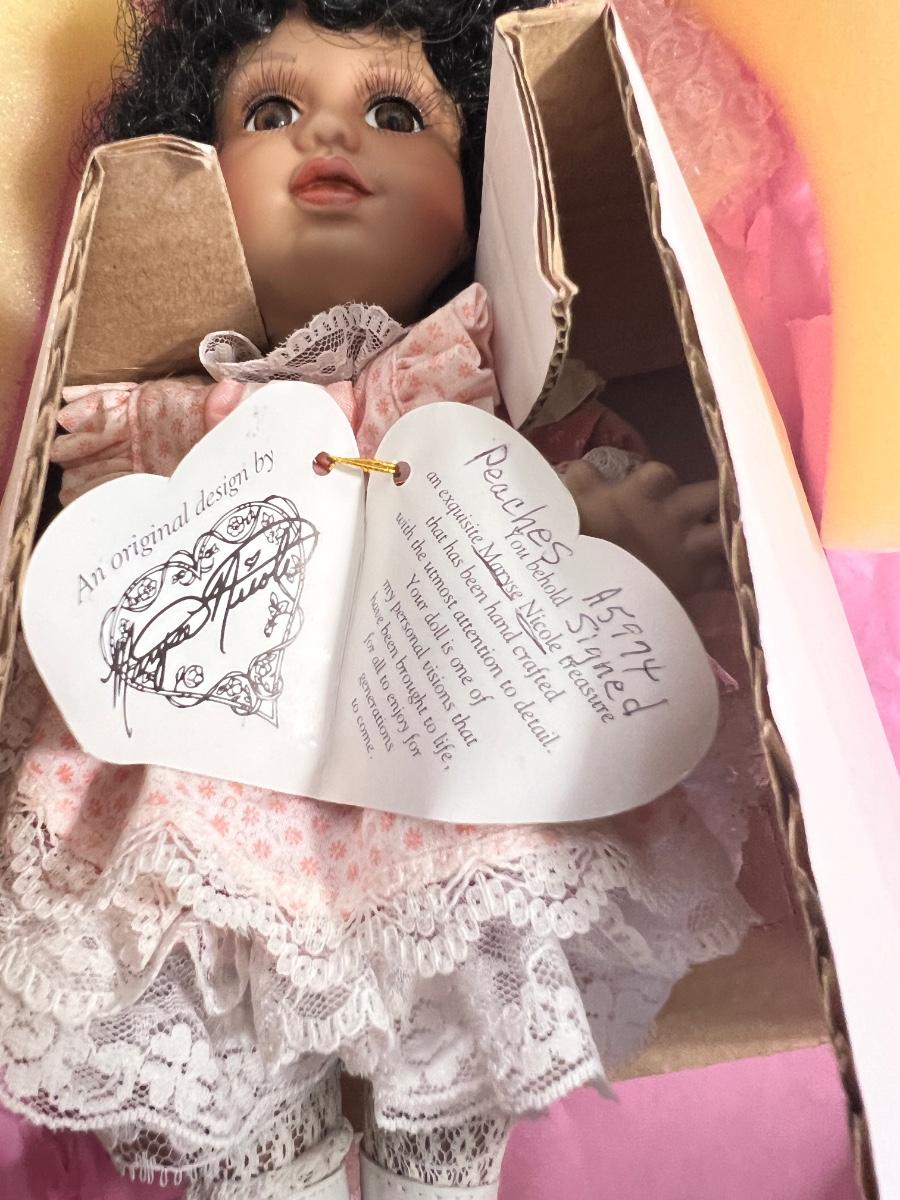 Franklin Heirloom Dolls Peaches Doll, by Maryse Nicole, signed as pictured