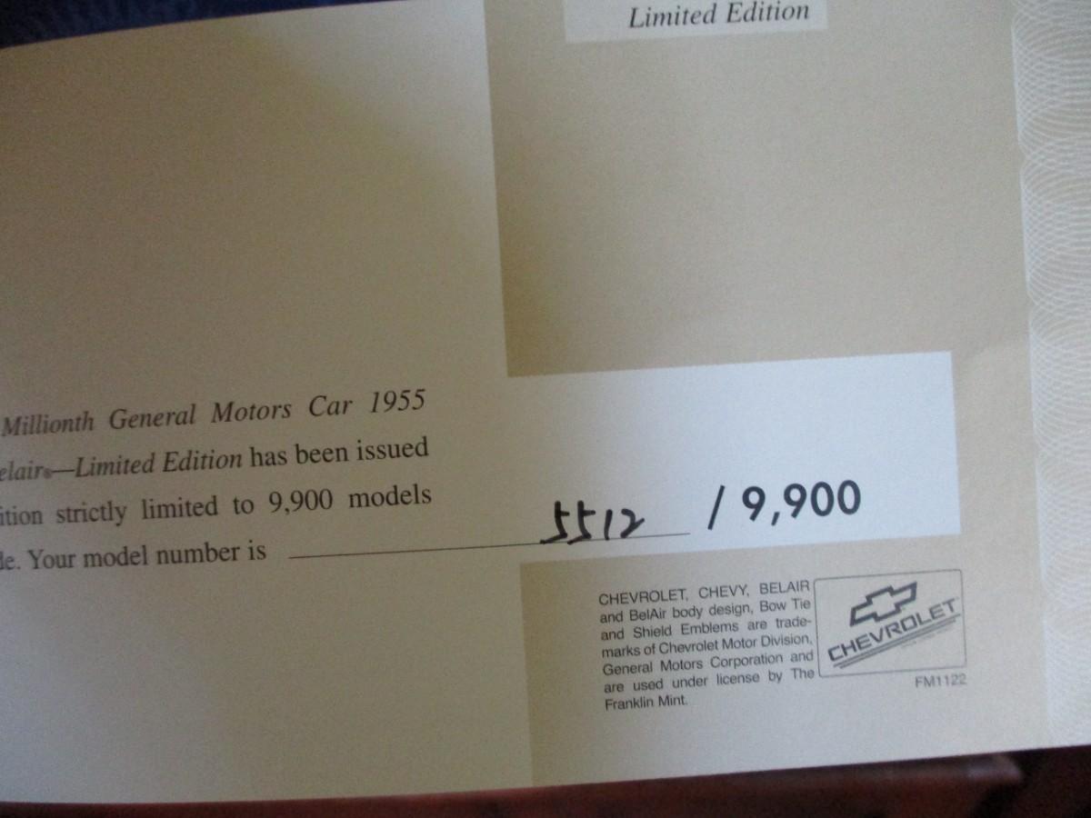 Franklin Mint 1955 Chevy Gold Edition GM's 50 Millionth Car Limited Edition