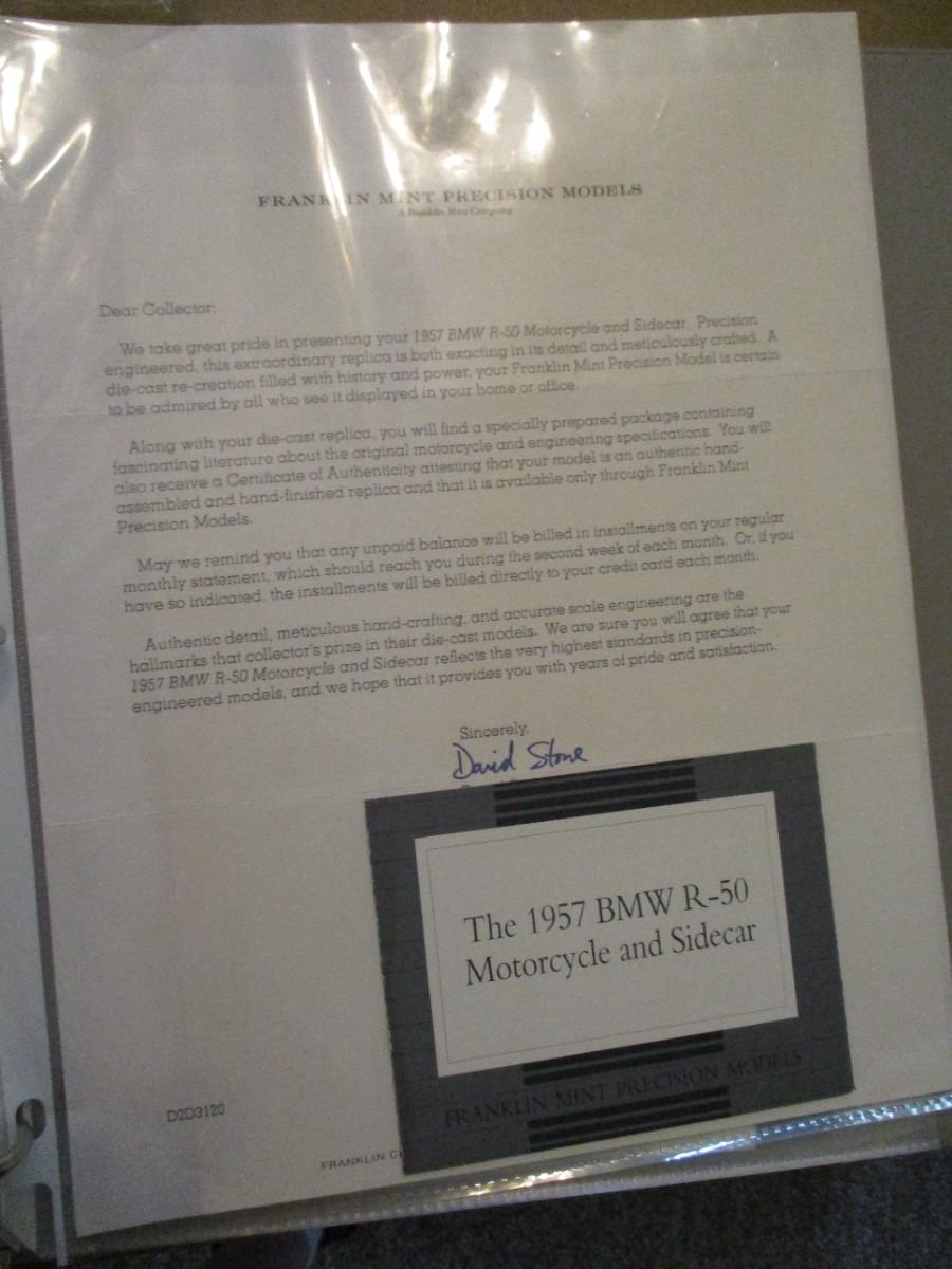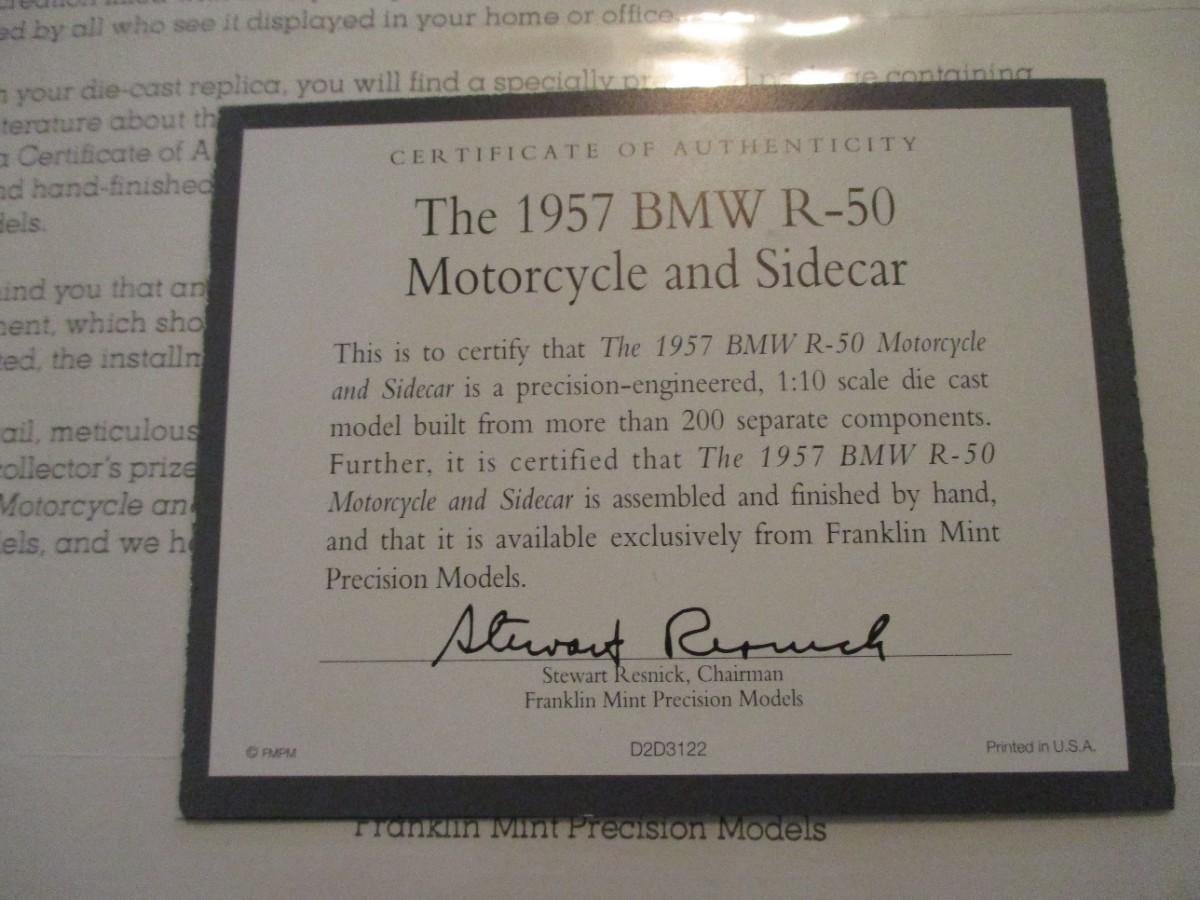 Franklin Mint 1957 BMW Motorcycle and Side Car appears one mirror is missing on handlebars