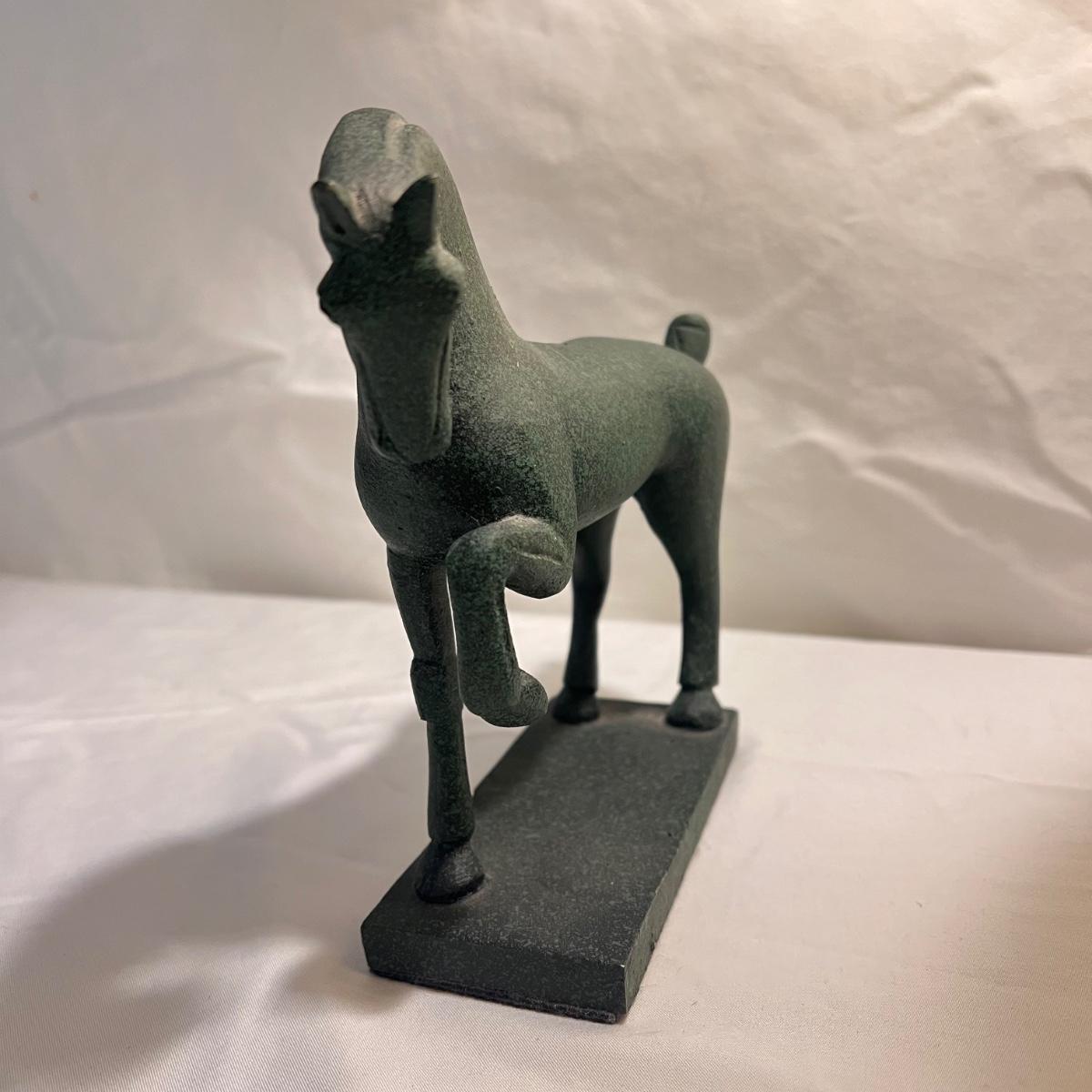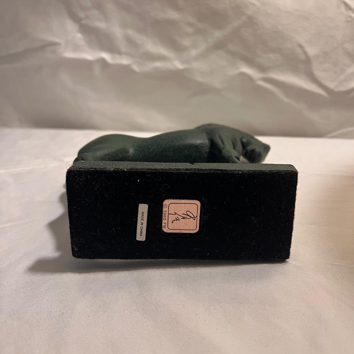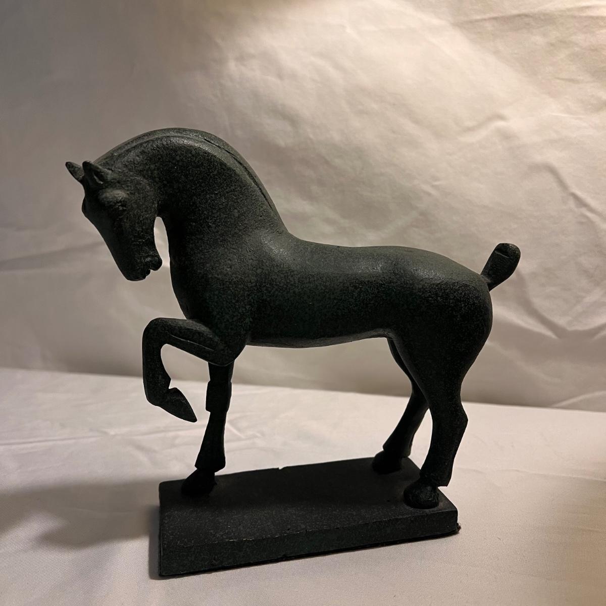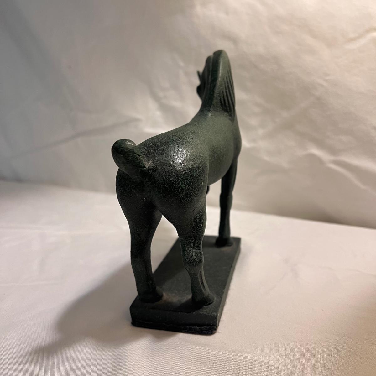 This bronze horse statue appears to be a Franklin Mint collectible item. It is a very sturdy piece and has 1985 on its sticker. It measures 5.5" x 2" x 6"H. Shipping available.