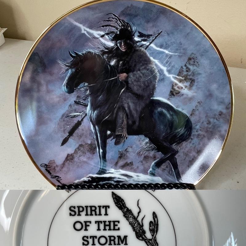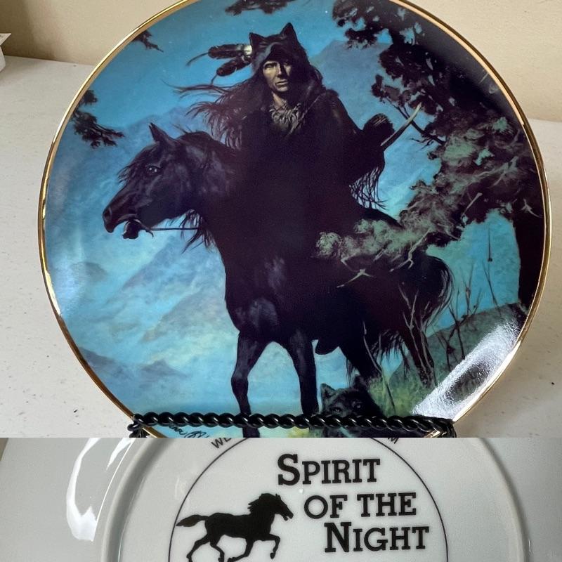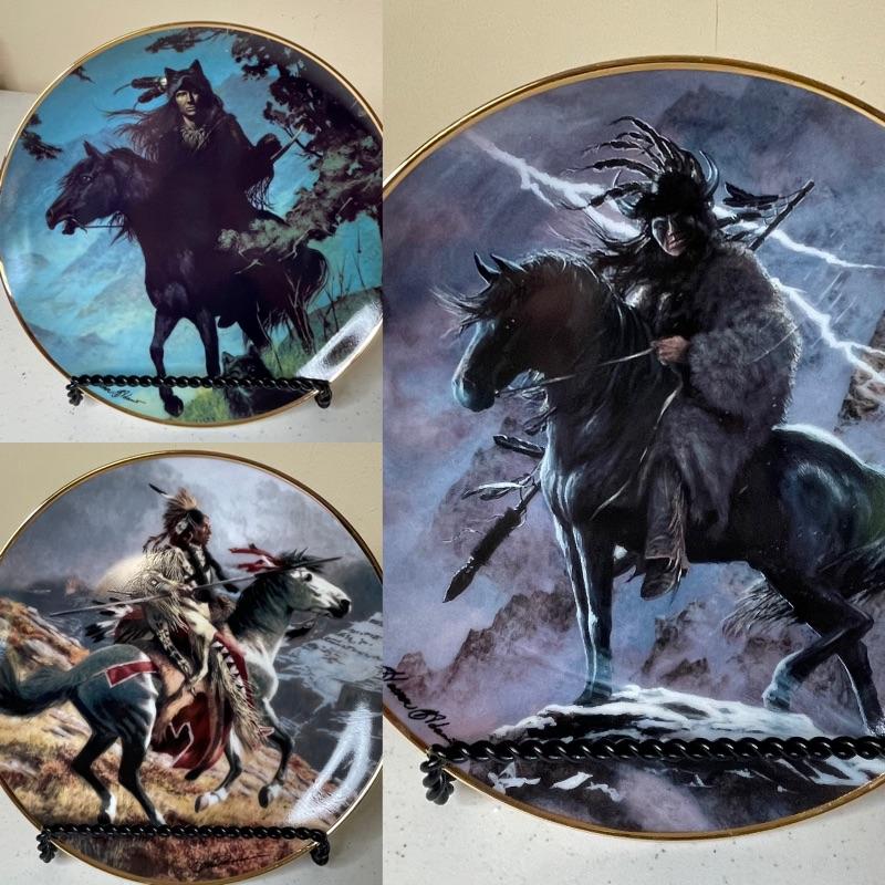 Collection of 3 plates. 8 1/2” round with gold rim.