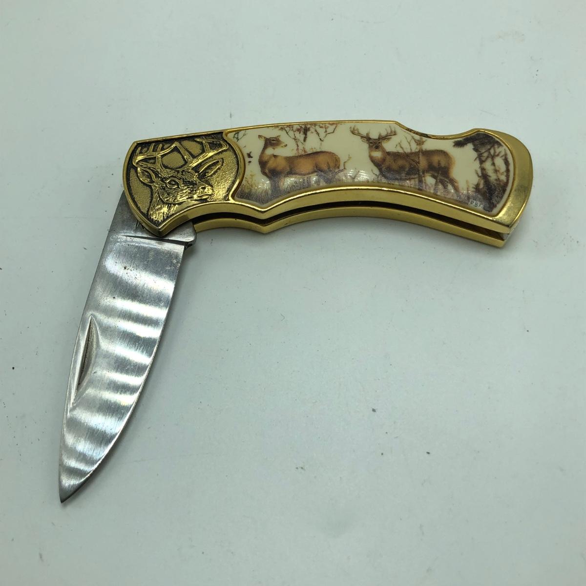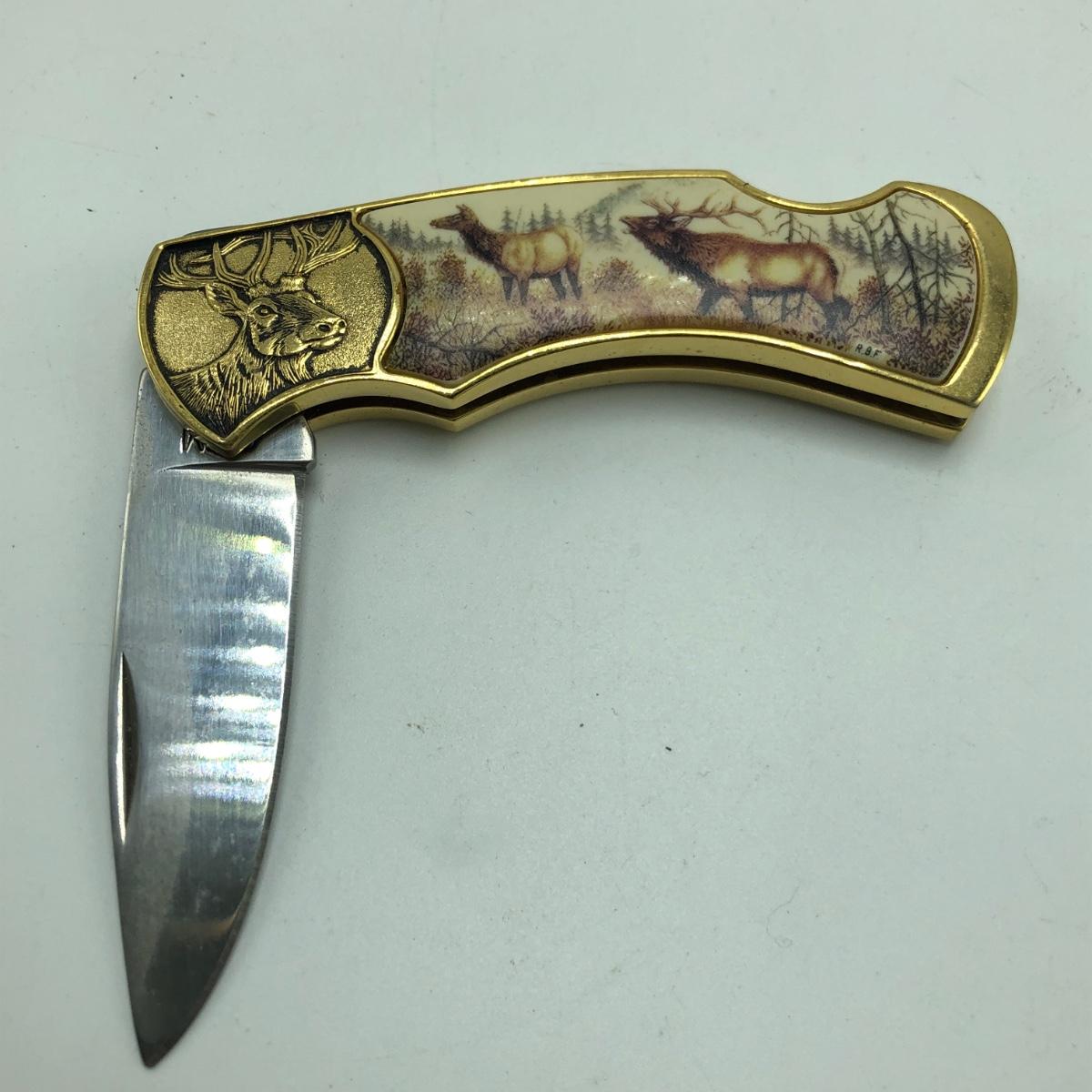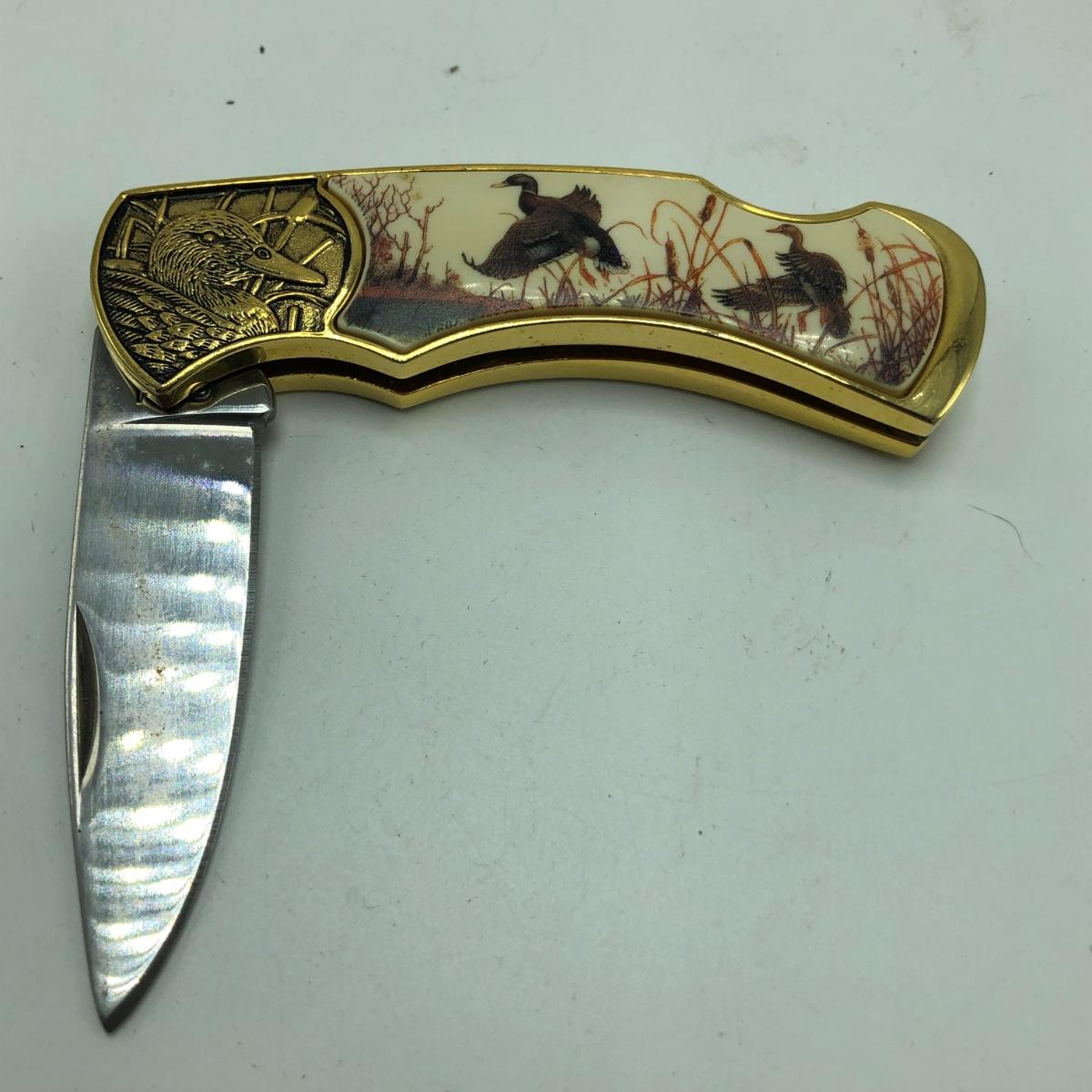 Lot contains six Franklin Mint collector pocketknives with an animal, bird or fish design, see pictures. Knives measure 6.75” long when open.