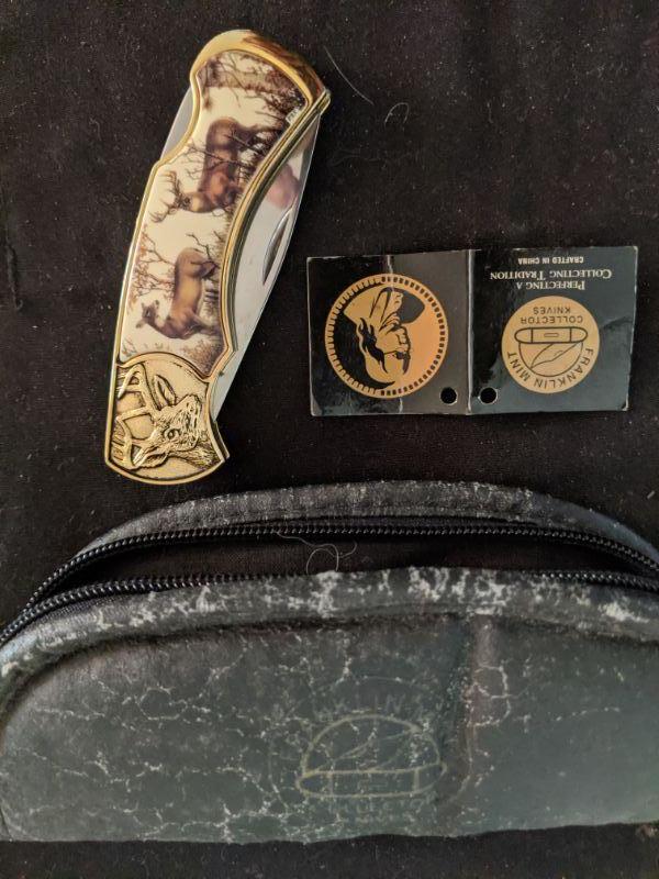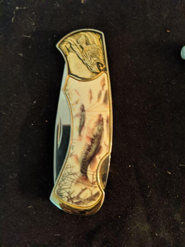 FRANKLIN MINT COLLECTORS POCKET KNIVE - TROUT SCENE