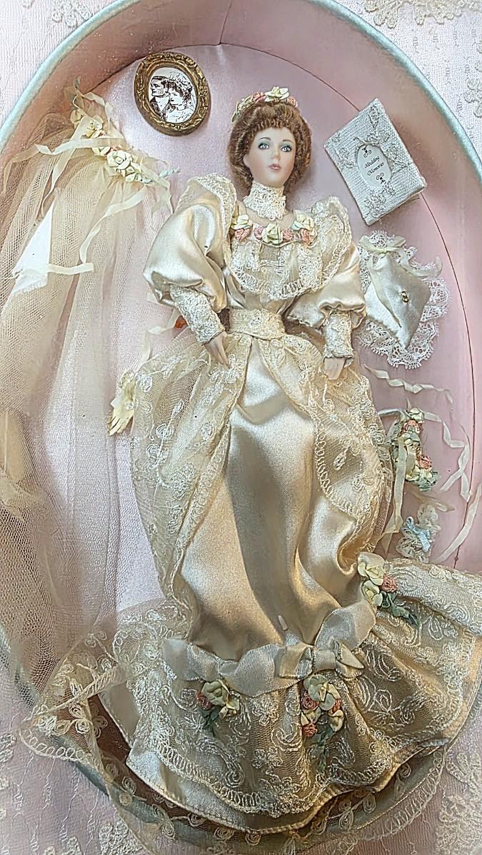Franklin Mint “Elaine” Gibson Girl Wedding Remembrance Shadow Box Doll w/ COA (RenembRance)