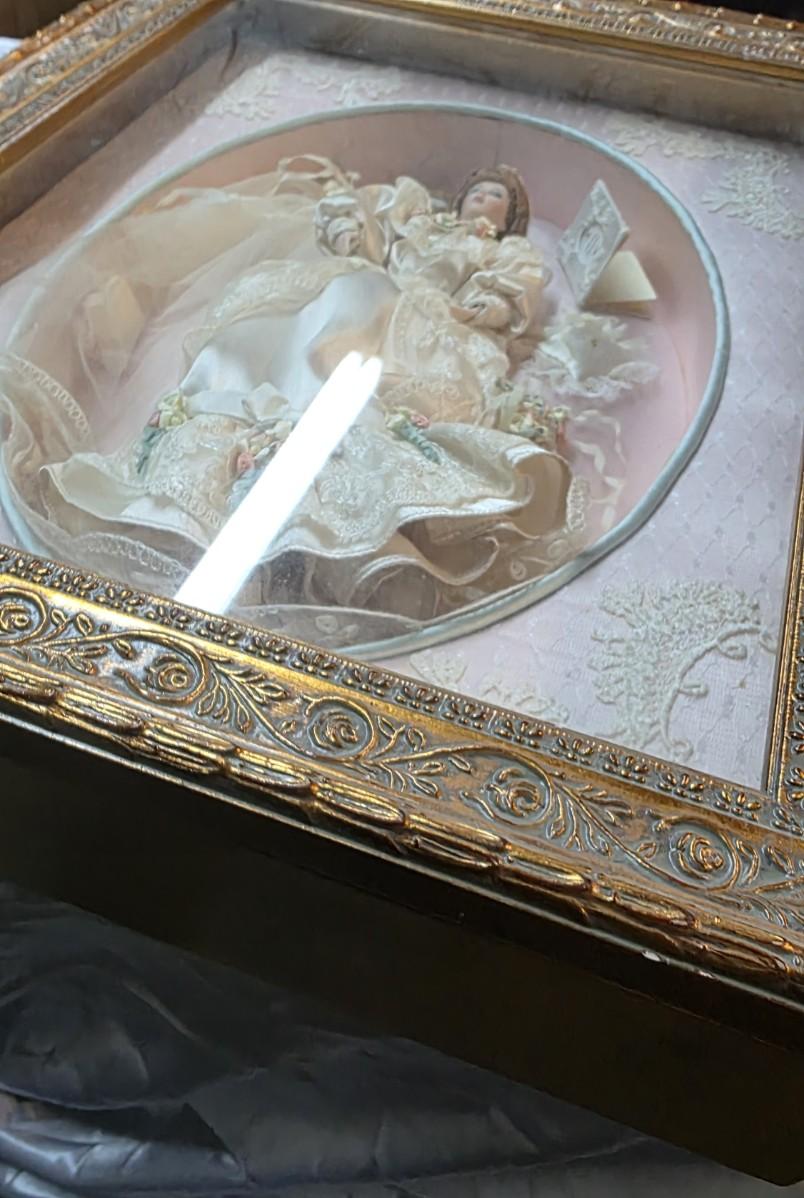Included with the piece is its original Certificate of Authenticity, confirming its Franklin Mint origin and documenting its place within the Wedding Remembrance collection. The frame, interior materials, and figure show gentle signs of age consistent with careful display, lending authenticity and character without detracting from its visual impact. This is the kind of collectible that transcends categories—equally at home among fine décor, curated doll collections, or romantic vintage interiors where storytelling matters as much as craftsmanship.