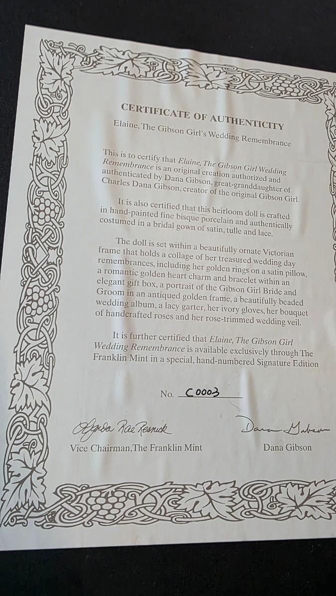 Franklin Mint “Elaine” Gibson Girl Wedding Remembrance Shadow Box Doll w/ COA (RenembRance)