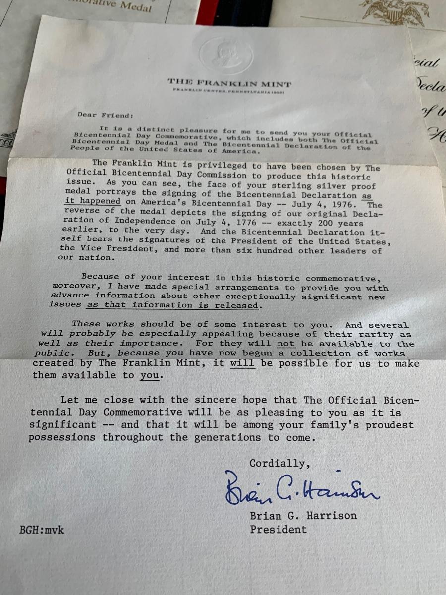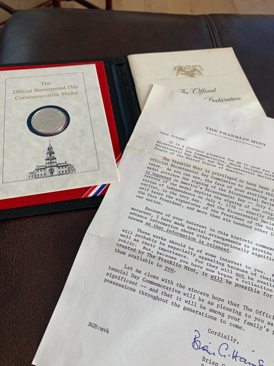Franklin Mint Official Bicentennial Day Commemorative Coin w paperwork