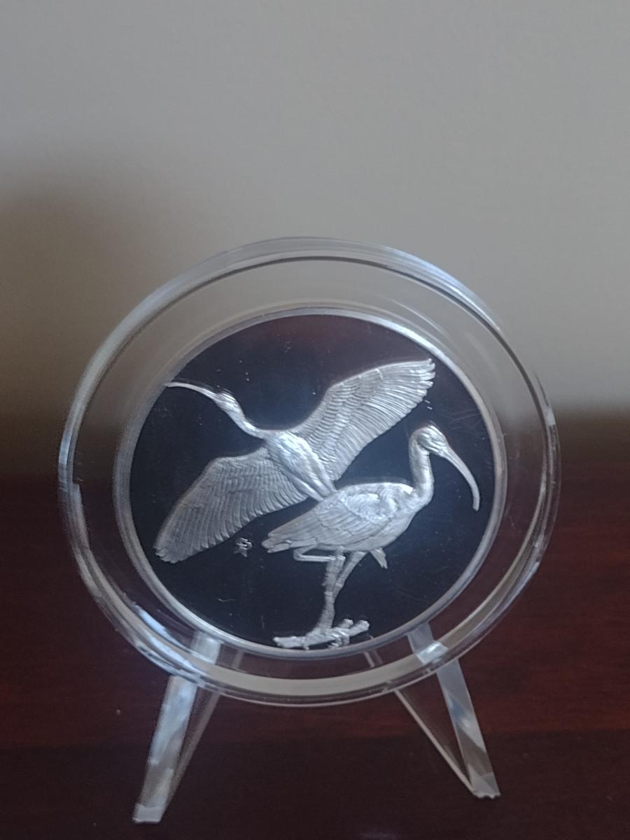 Franklin Mint Roberts Birds Sterling Silver Medal- White Ibis- Approx Weight 66 Grams