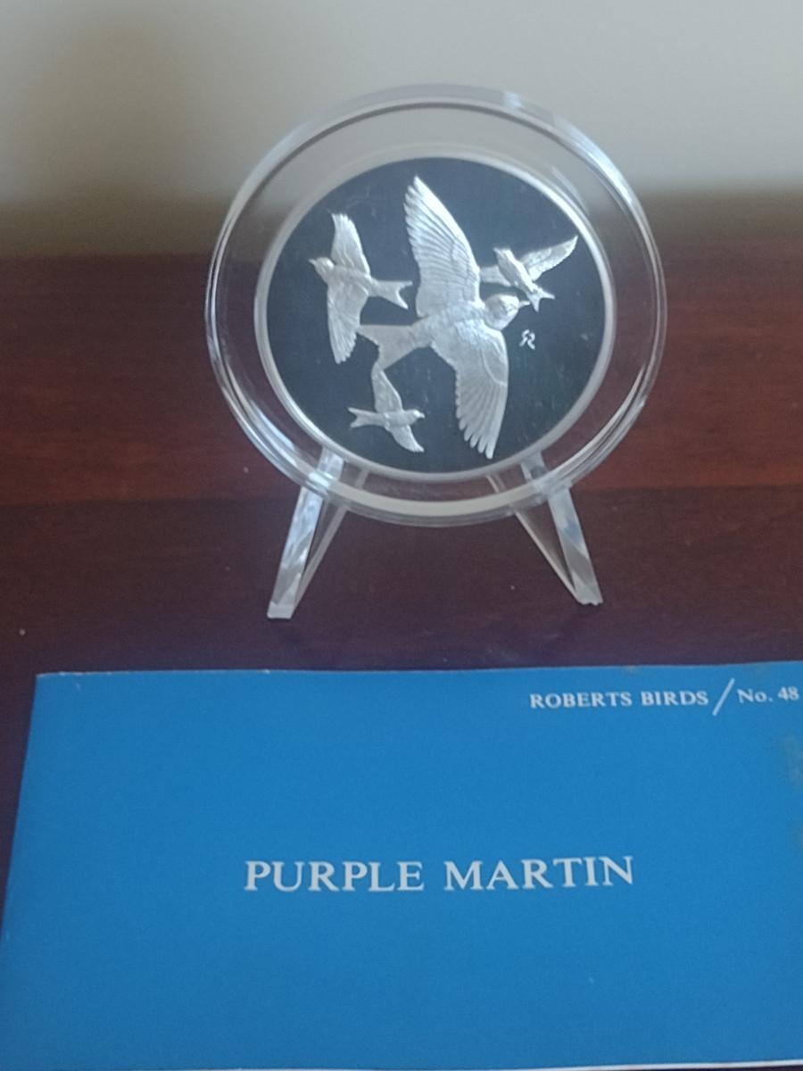 Franklin Mint Roberts Birds Sterling Silver Medal- Purple Martin- Approx Weight 66 Grams