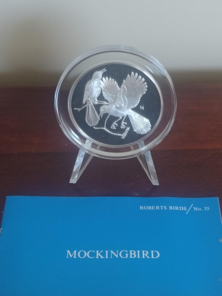 Franklin Mint Roberts Birds Sterling Silver Medal- Mockingbird- Approx Weight 66 Grams
