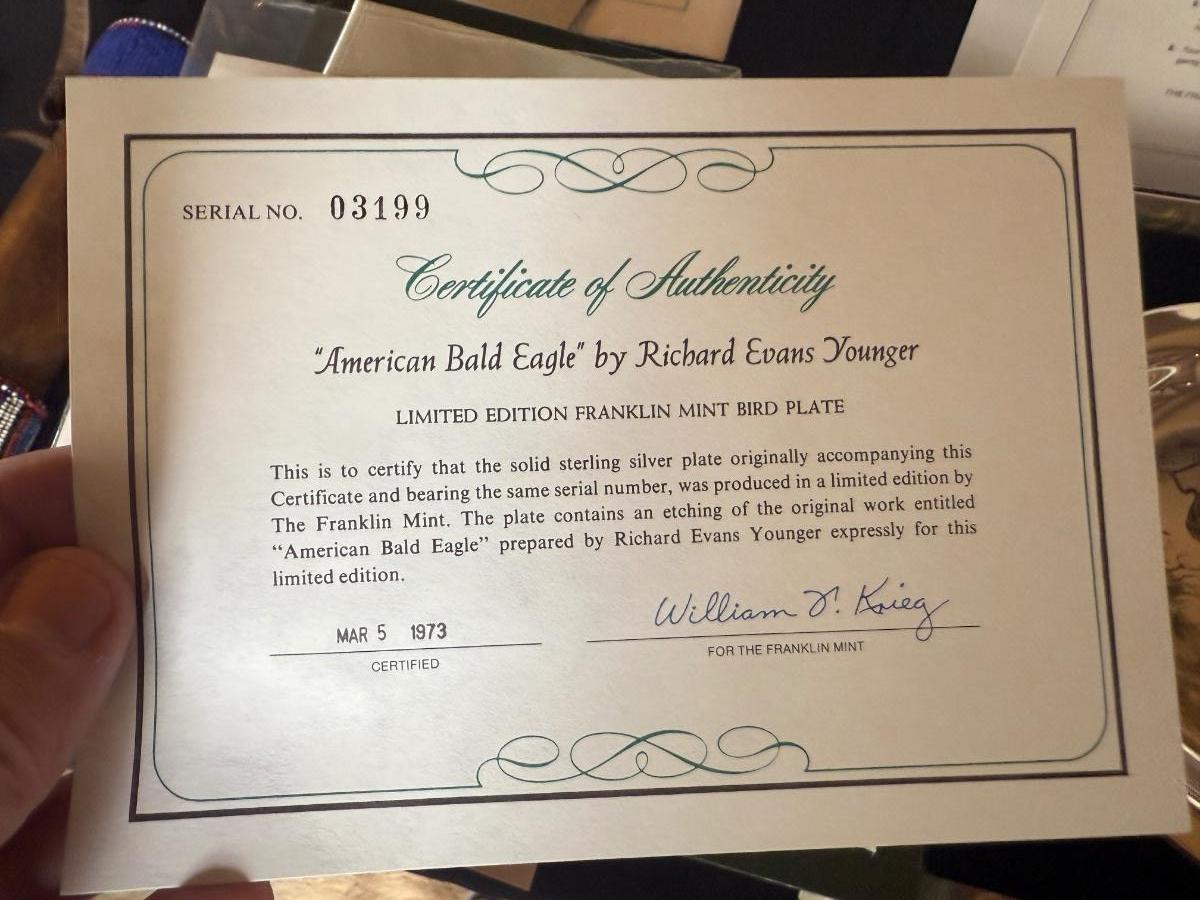 Franklin Mint Sterling Silver Collector Plate - 194 Grams