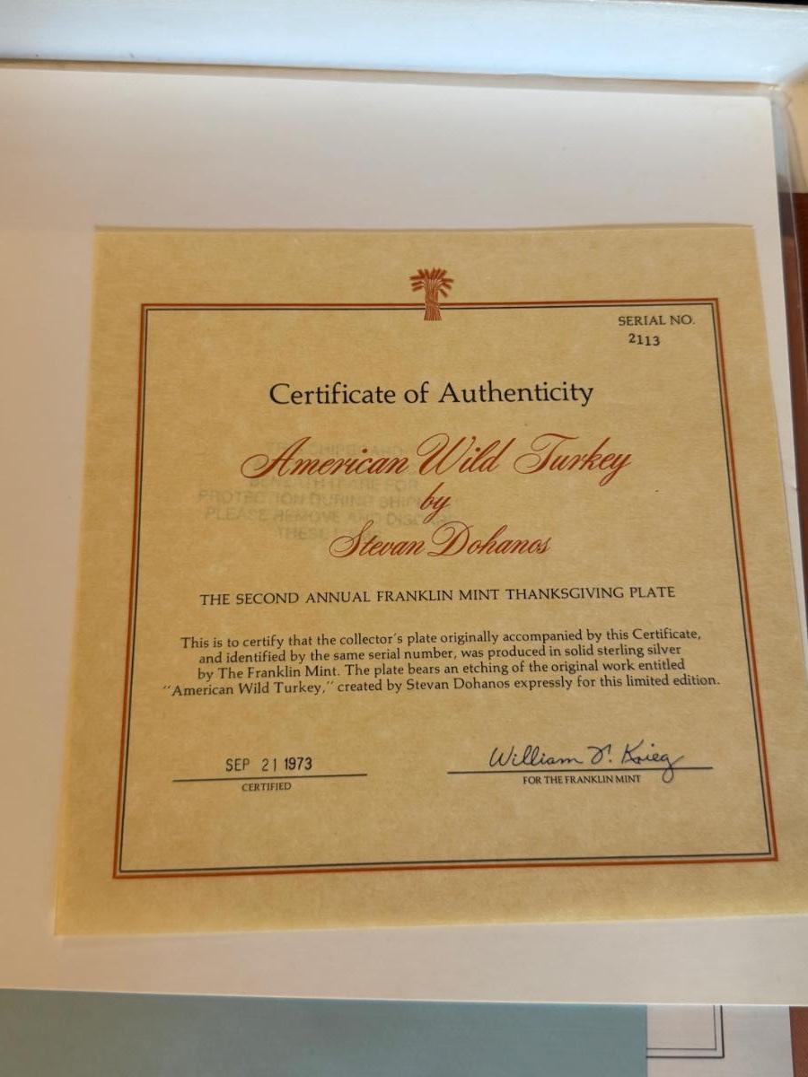 Franklin Mint Sterling Silver Collector Plate - 180 Grams