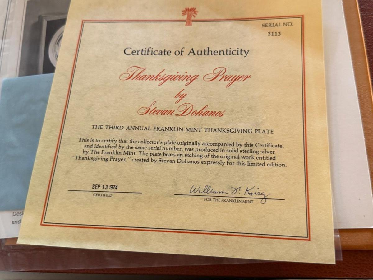 Franklin Mint Sterling Silver Collector Plate - 170 Grams