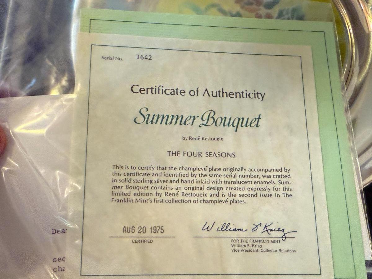 Franklin Mint Sterling Silver Collector Plate - 260 Grams