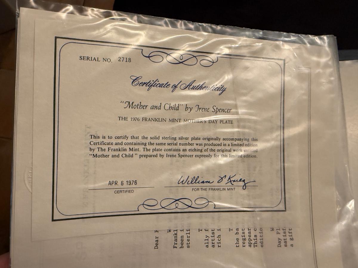 Franklin Mint Sterling Silver Collector Plate - 174 Grams