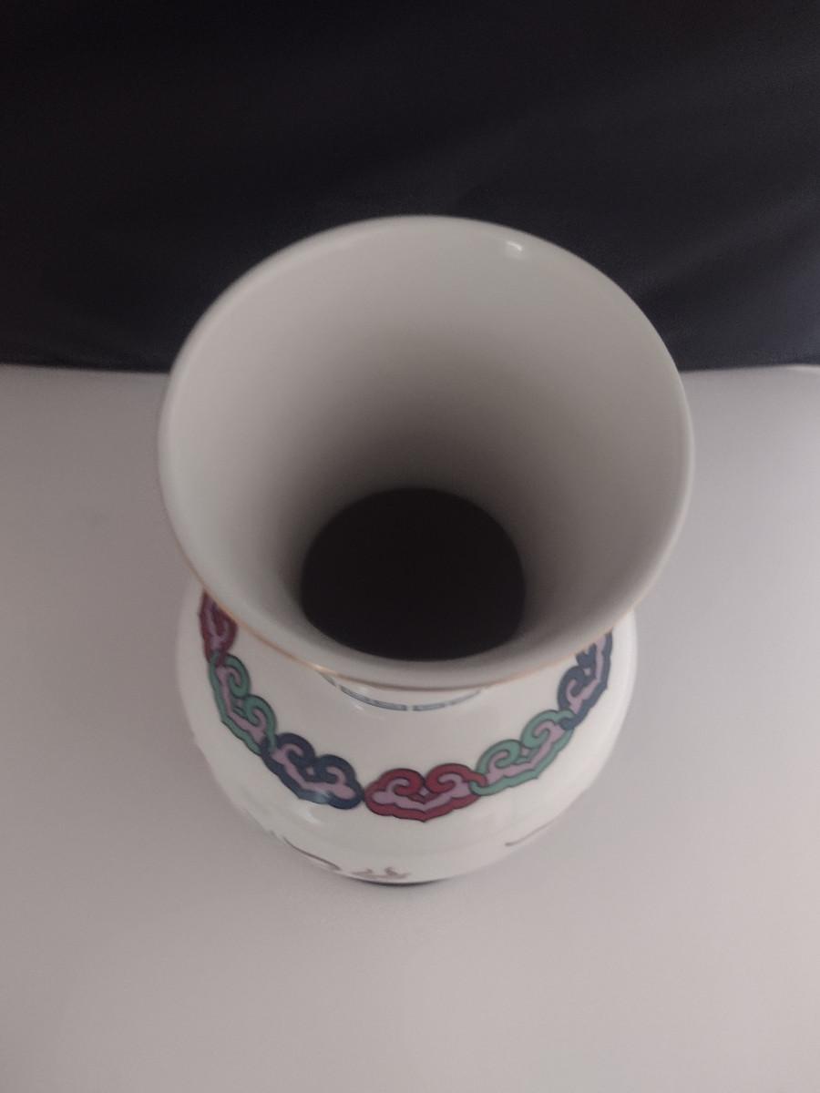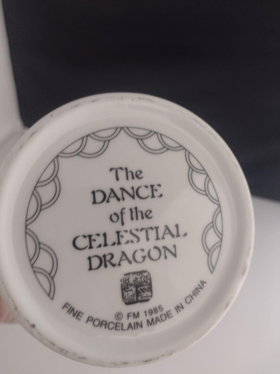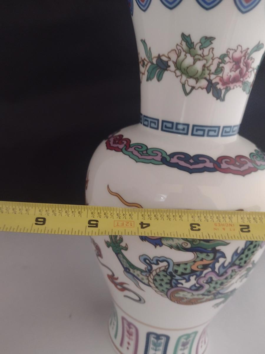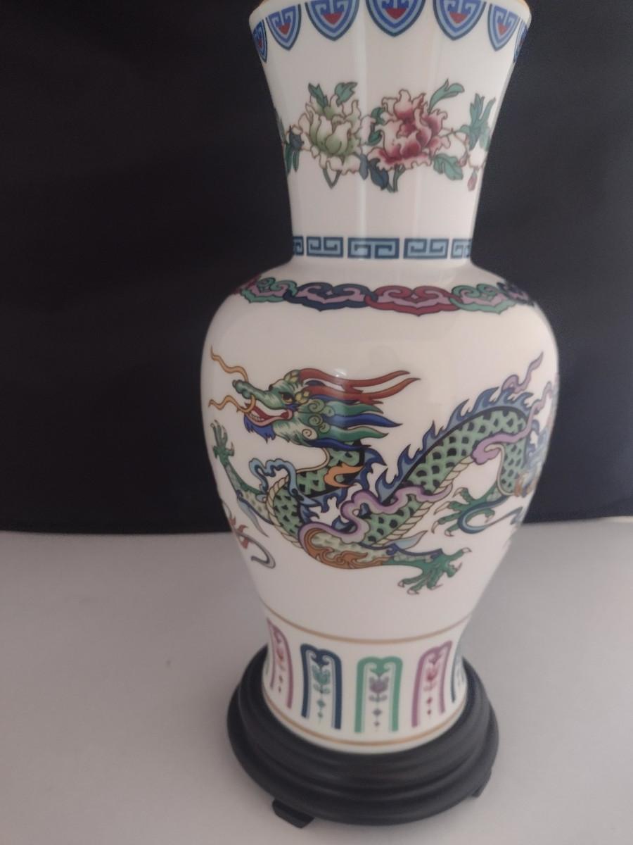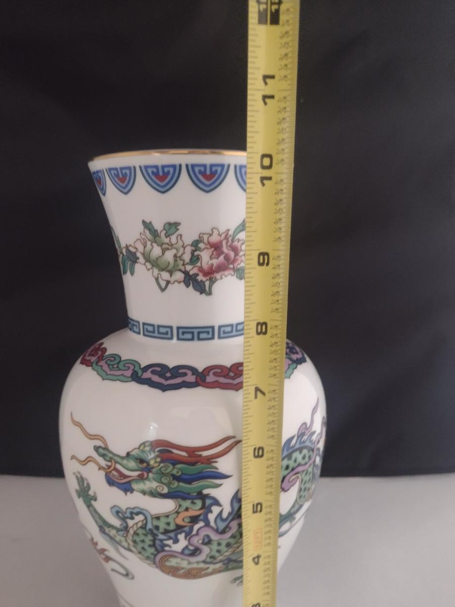 Franklin Mint 'The Dance of the Celestial Dragon' Porcelain Vase with Wooden Stand- Approx 10 1/4" Tall