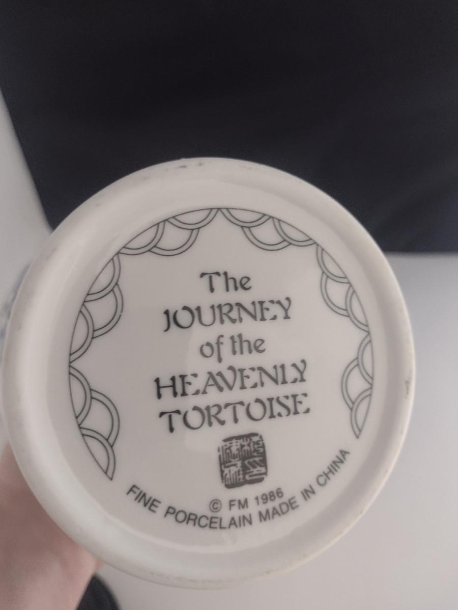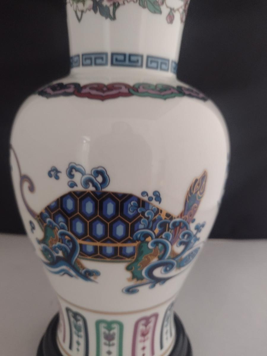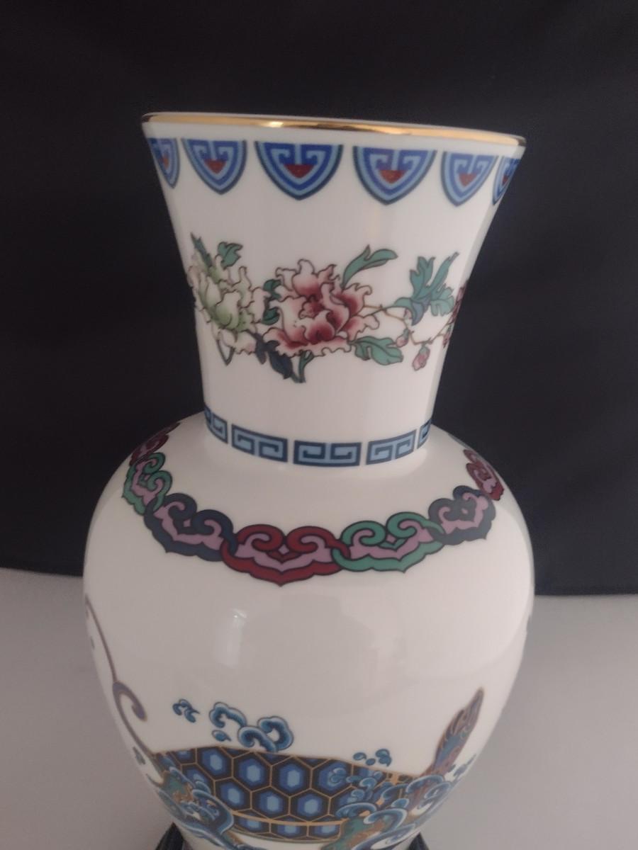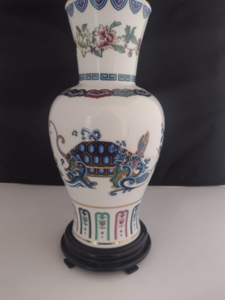 Franklin Mint 'The Journey of the Heavenly Tortoise' Porcelain Vase with Wooden Stand- Approx 10 1/4" Tall