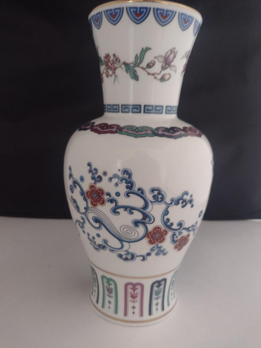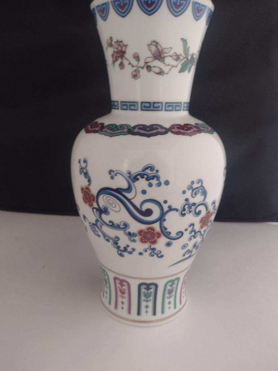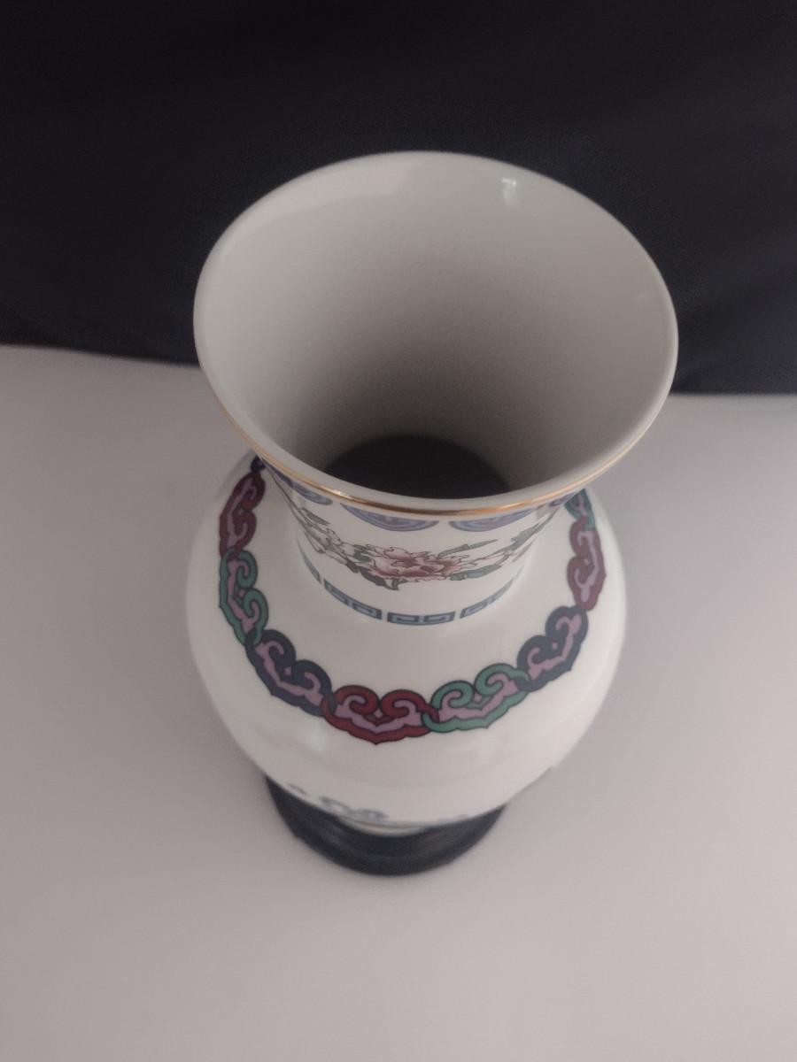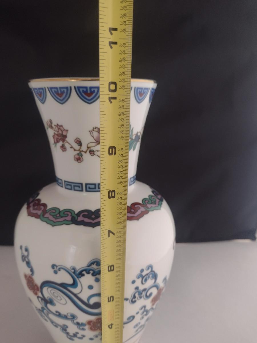 Franklin Mint 'The Journey of the Heavenly Tortoise' Porcelain Vase with Wooden Stand- Approx 10 1/4" Tall